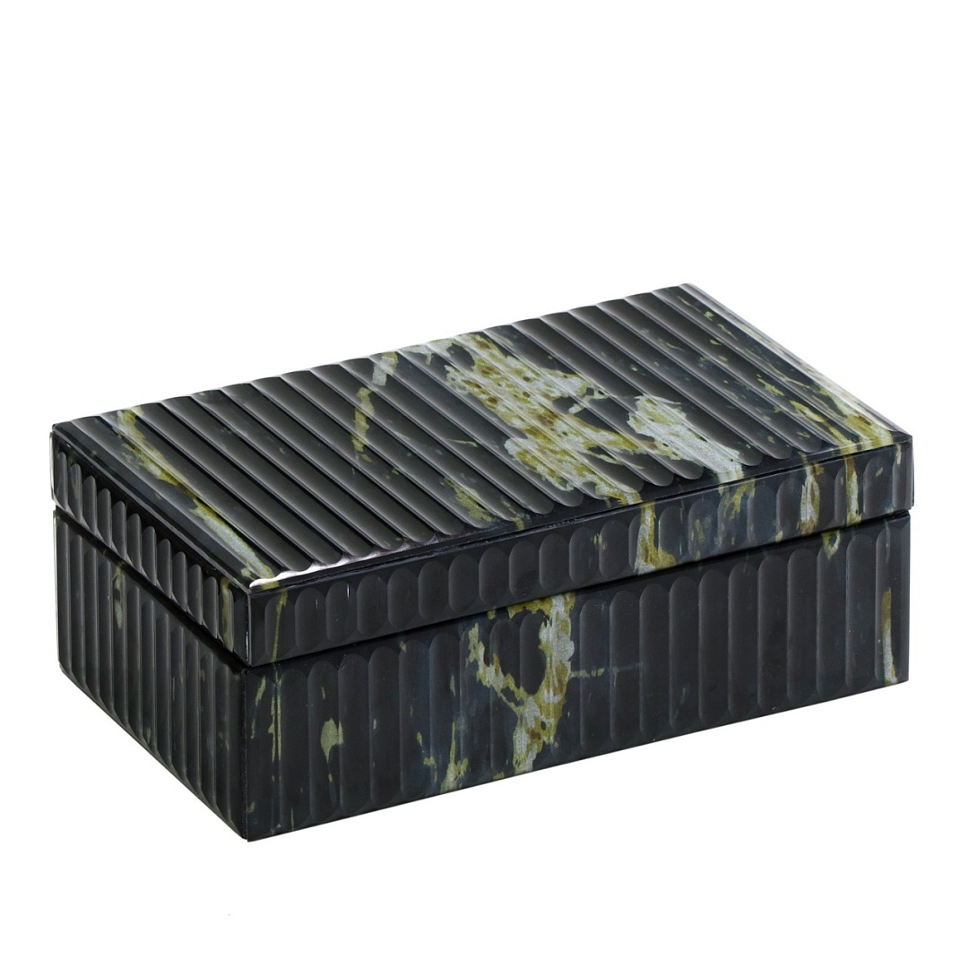 Шкатулка для украшений Luna — идеальное сочетание современности и элегантности. Её корпус выполнен из стекла с рельефным рисунком — вертикальные линии создают объём, игру света и тени, а мраморный оттенок с золотистыми прожилками придает изделию утонченность и индивидуальность. Внутри — мягкий велюр для бережного хранения ювелирных украшений и других ценных мелочей. Шкатулка станет изысканным акцентом на туалетном столике или комоде. Станет идеальным подарком для ценителя современного элегантного дизайна.