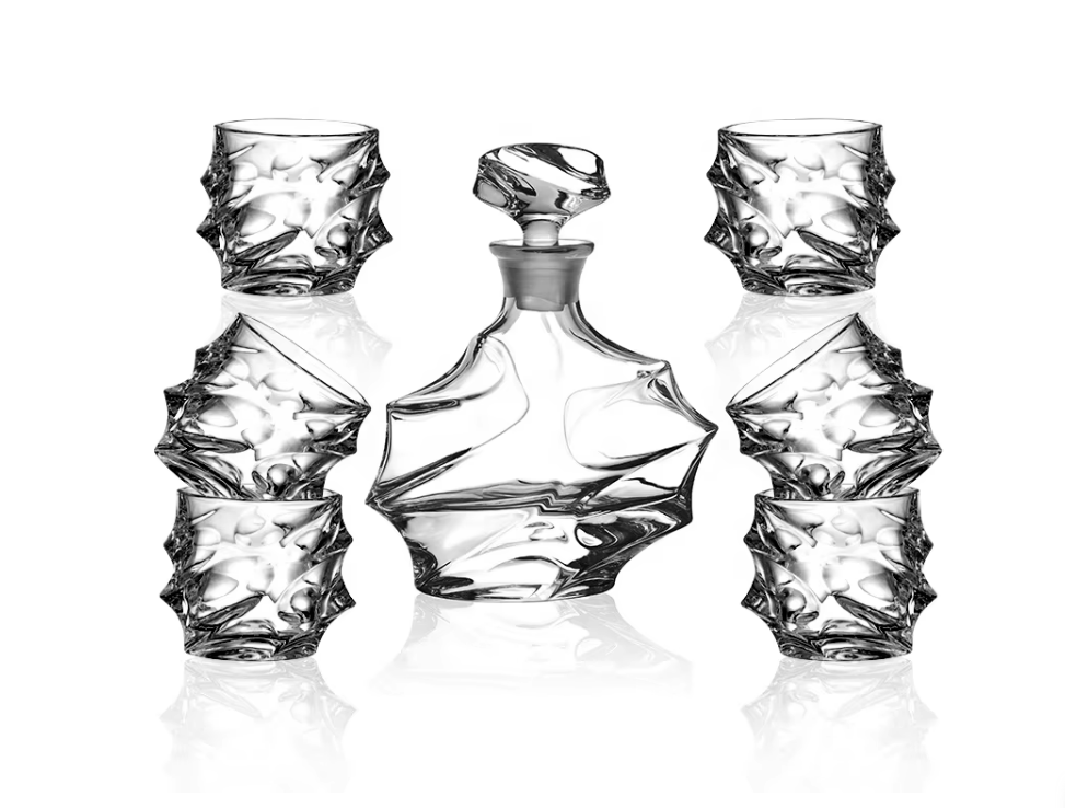Подарите себе или своим близким атмосферу праздника и изысканности с набором Kink. В комплект входят один декантер и шесть стаканов, выполненных из высококачественного прозрачного стекла. Каждый предмет объединён общей концепцией — футуристичным дизайном с многочисленными гранями и эффектом «закрученной» формы. Это создает динамичный и визуально привлекательный вид, который станет украшением любого интерьера. Идеальный выбор для ценителей современного дизайна и тех, кто ищет не просто посуду, а выразительный акцент в интерьере.