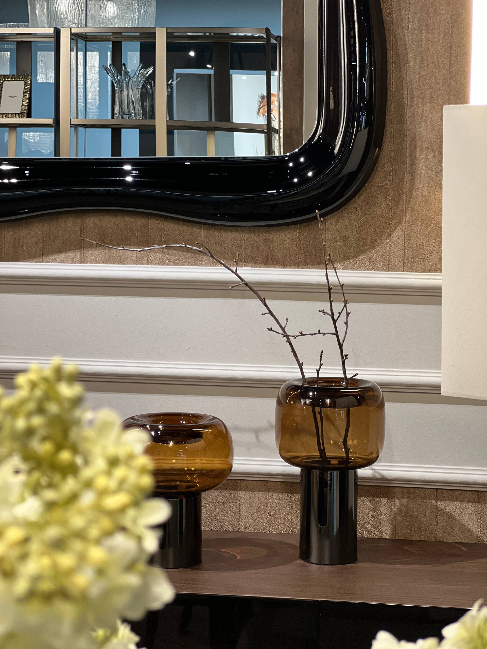 Стеклянная ваза Asteria создает яркий завораживающий контраст: полупрозрачная чашеобразная верхняя часть , которая пропускает свет, в сочетании с тёмным цилиндрическим основанием. Ваза изготовлена из стекла насыщенного янтарно-коричневого оттенка. Прекрасно будет смотреться как самостоятельно акцента — так и с небольшим букетом. Подарите себе или близкому предмет искусства, который станет акцентом в любом пространстве — и напомнит, что красота живёт в деталях.