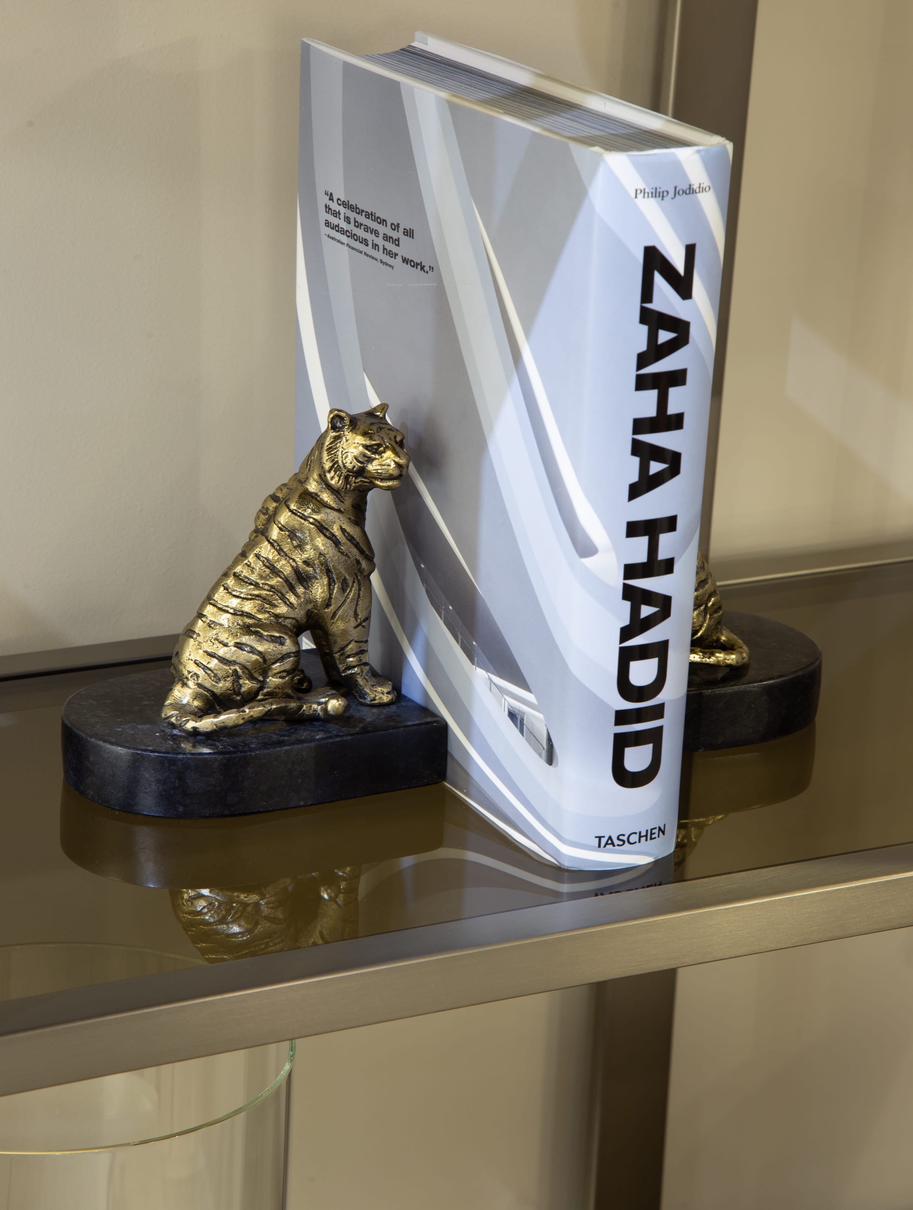 Держатель для книг Tiger станет акцентным декором на книжных полках в домашней библиотеке. Выполненный из металла в форме благородных тигров, он подчеркнет ваш изысканный вкус.