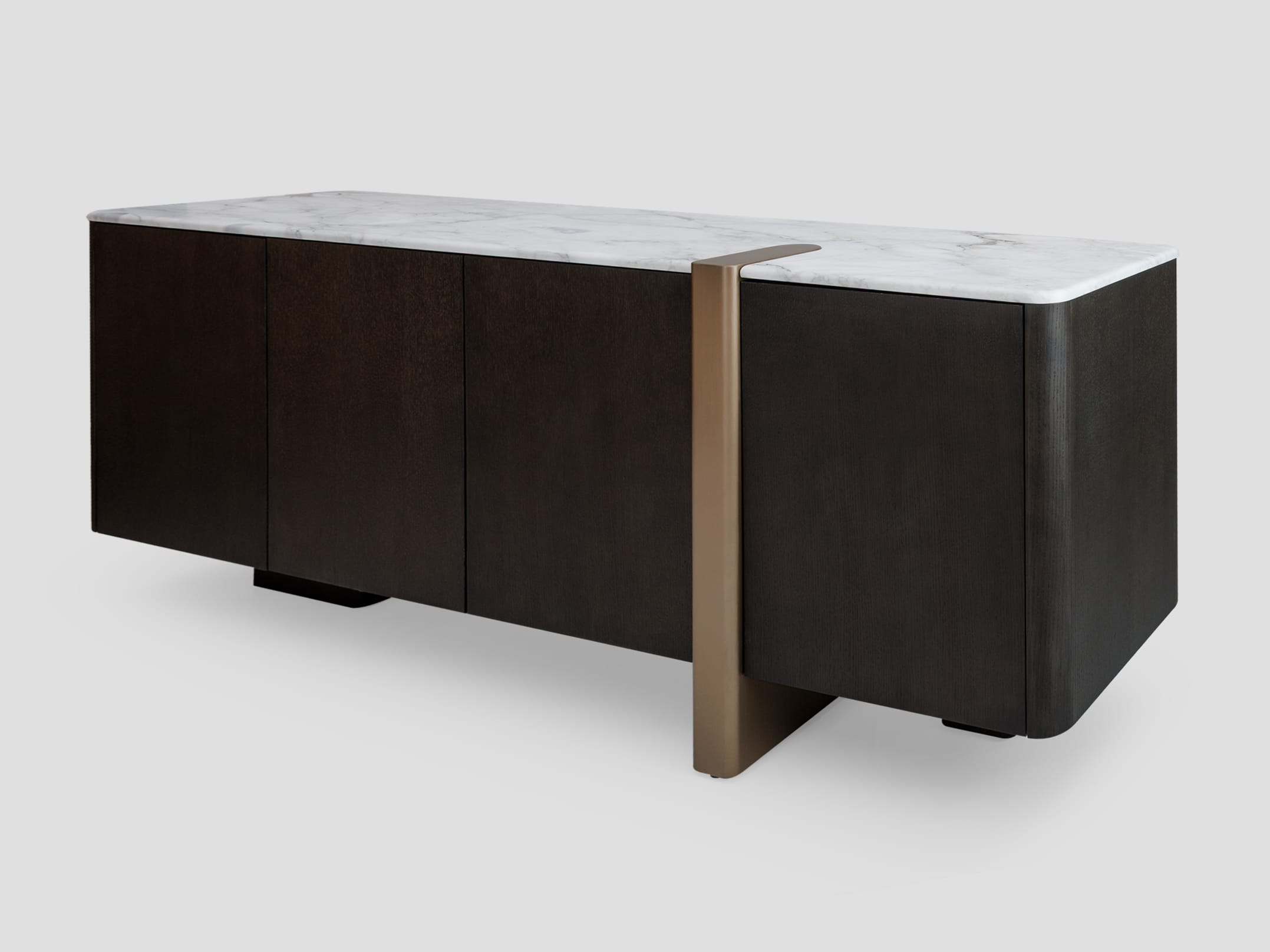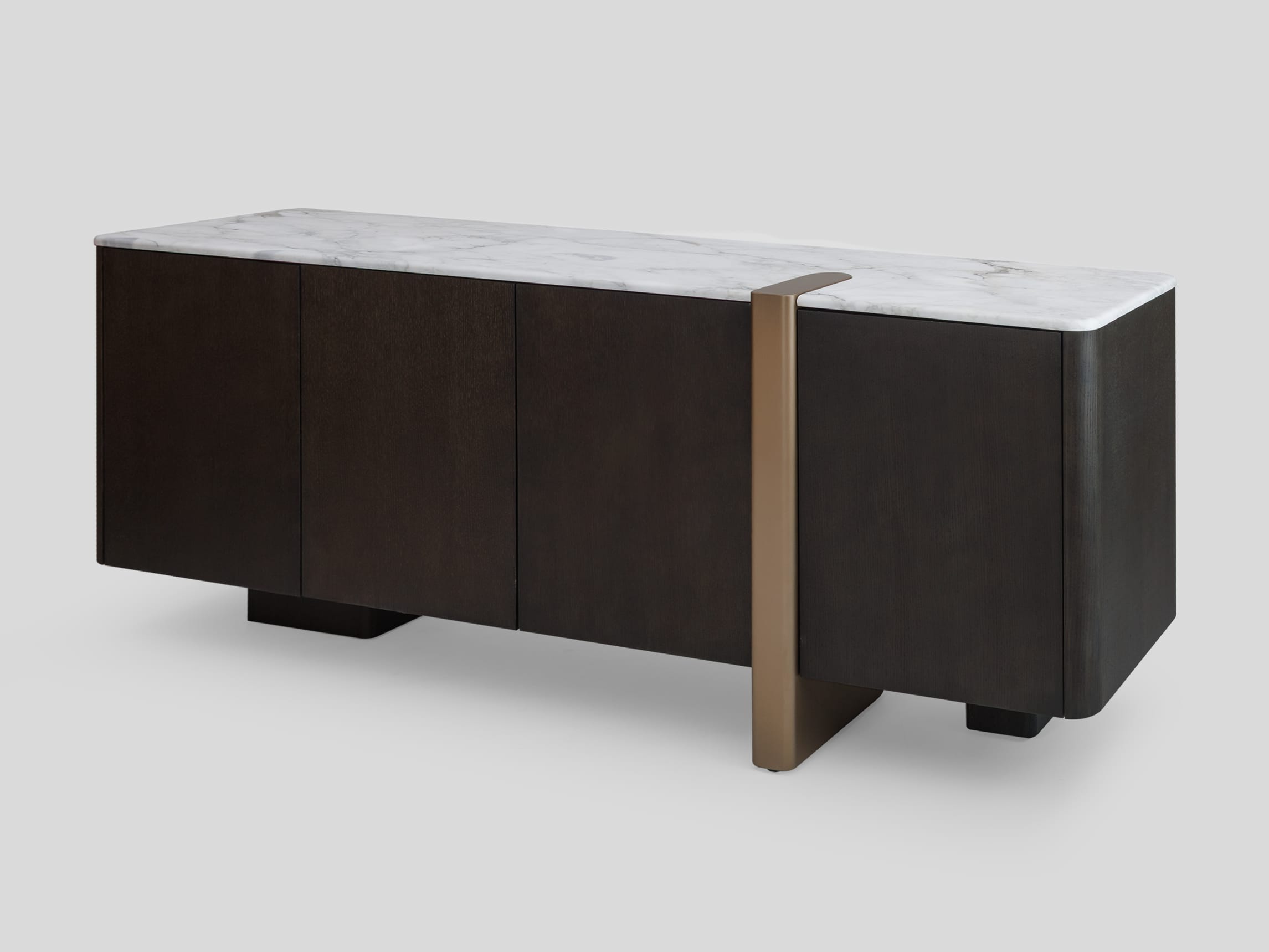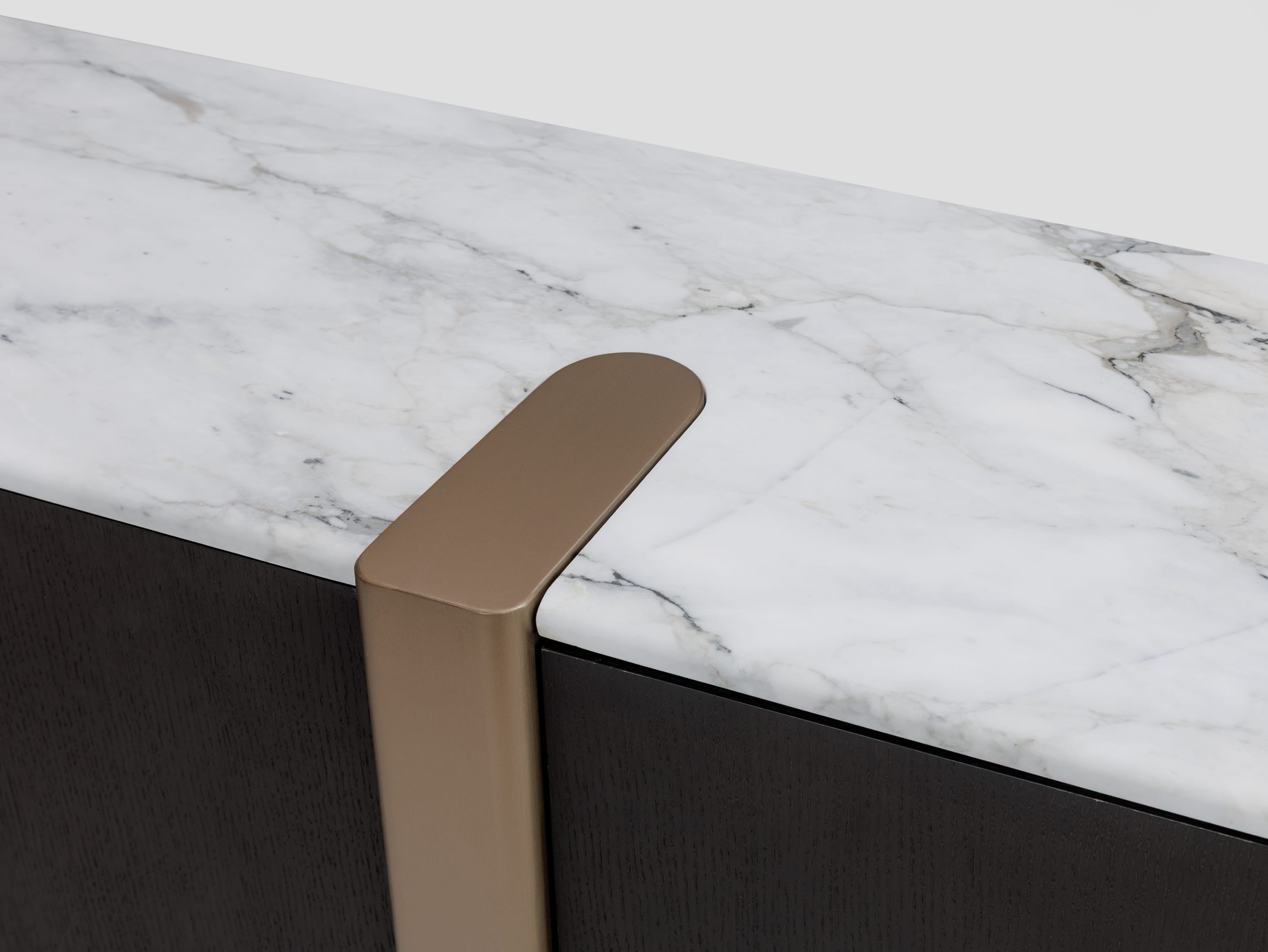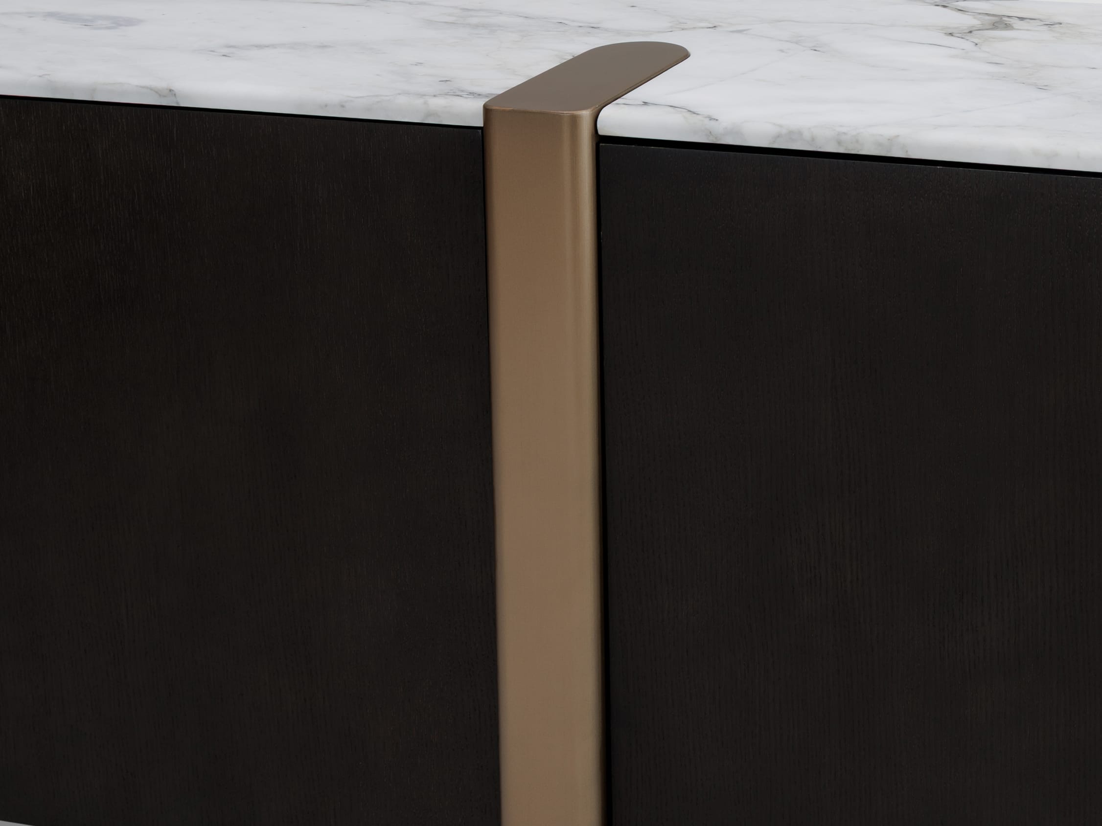 Комод Madison — это гармоничное сочетание стиля и функциональности, идеально вписывающееся в современный интерьер. Изготовленный из качественного темного шпона дуба с выразительной текстурой, он дополнен столешницей из натурального мрамора, придающей изделию особую роскошь. Минималистичный дизайн с тремя секциями и декоративным элементом выполненным из МДФ в финише латунь создаёт изысканный акцент, подчеркивающий утончённость и современный облик. Комод Madison станет удачным выбором для спальни или гостиной, сочетая практичность, долговечность и элегантный внешний вид.