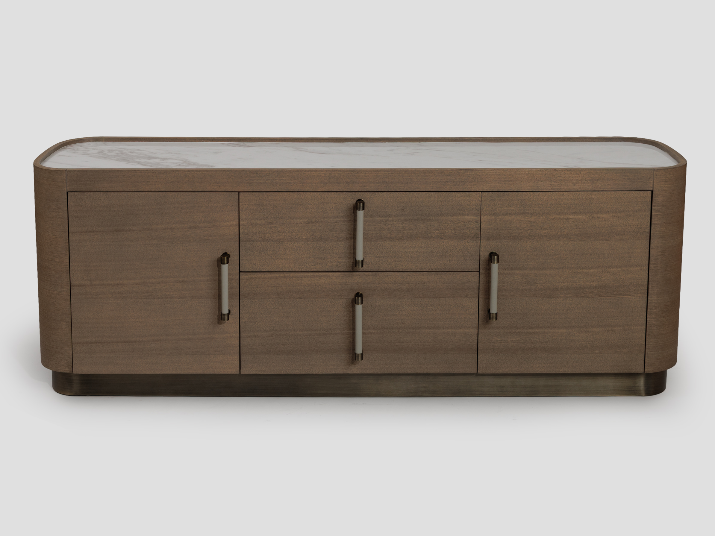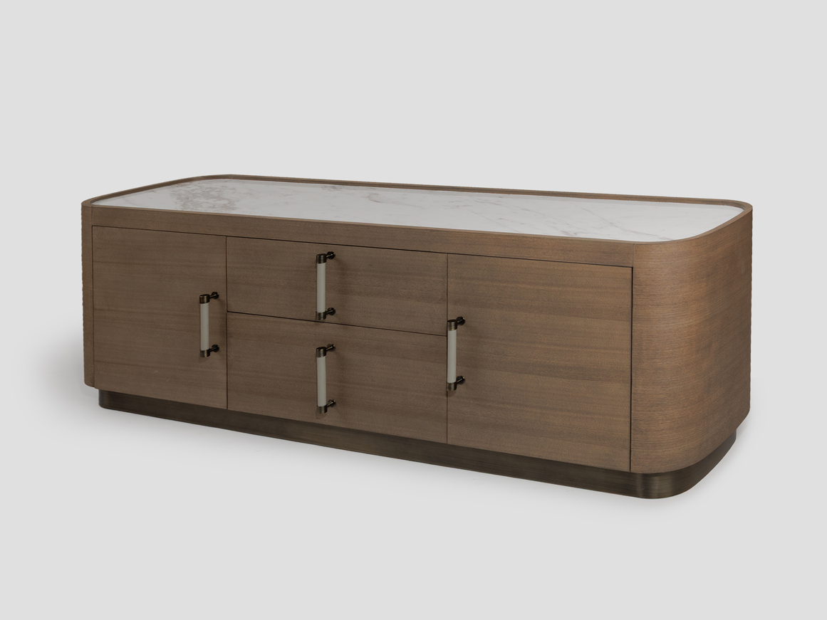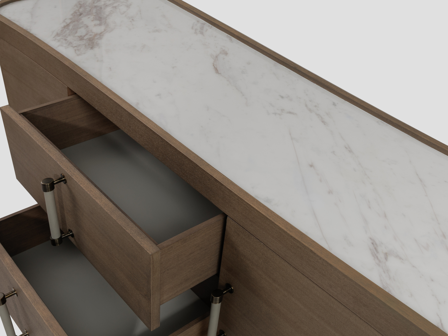 Комод с плавными формами и столешницей из белого мрамора будет прекрасным и функциональным решением для вашей гостиной, спальни или прихожей. Он предоставляет достаточно места для хранения различных предметов и станет элегантным акцентом в вашем интерьере, придающим изысканности и роскоши общему стилю помещения.