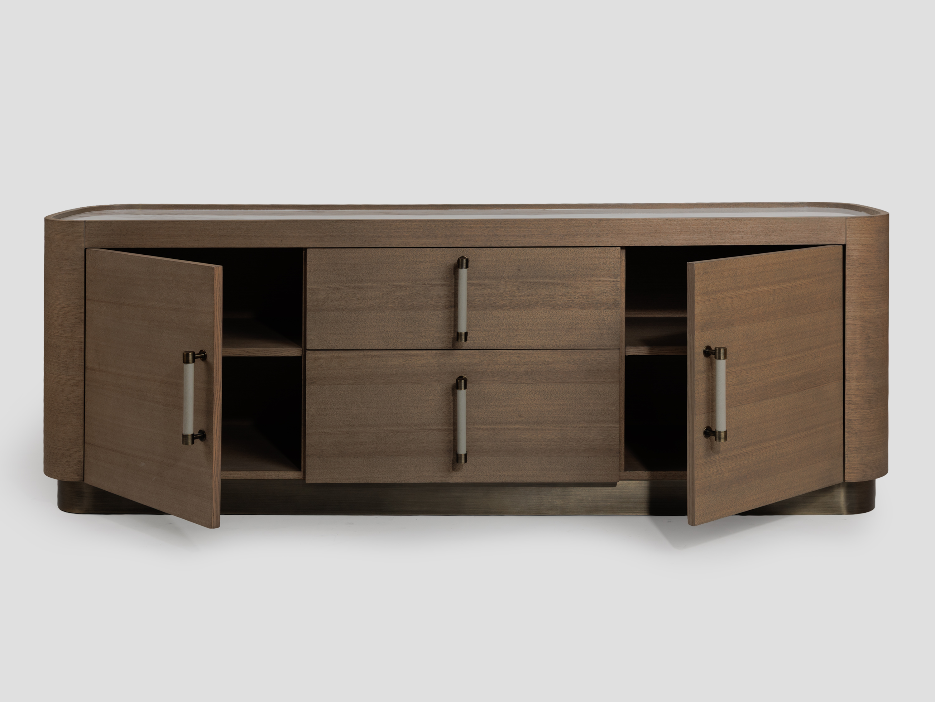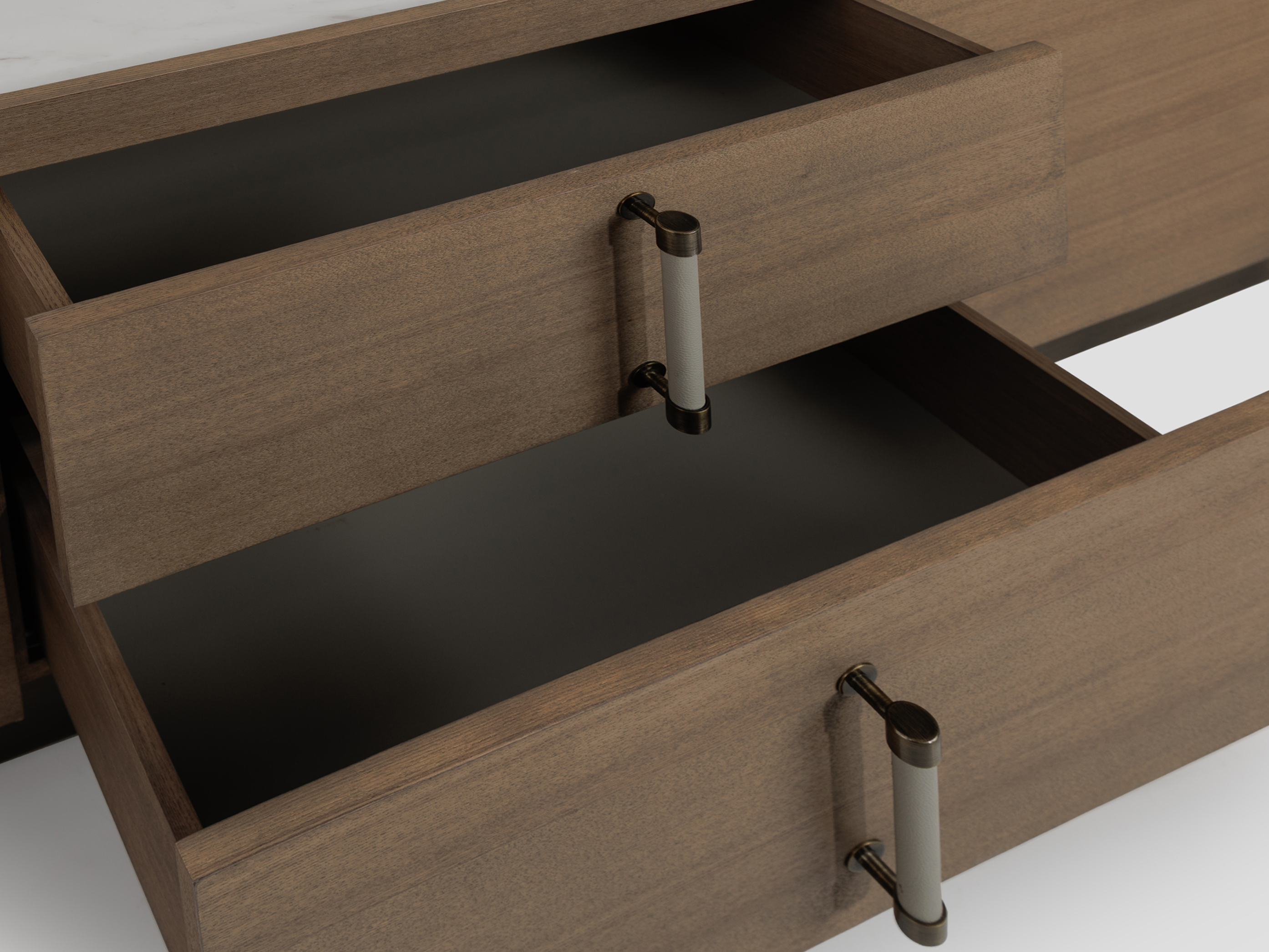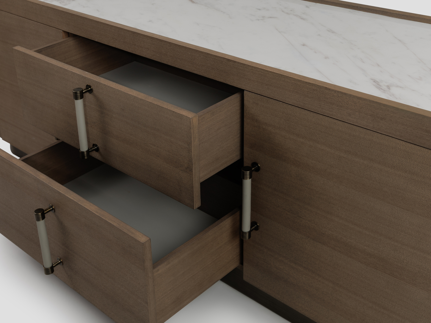 Комод с плавными формами и столешницей из белого мрамора будет прекрасным и функциональным решением для вашей гостиной, спальни или прихожей. Он предоставляет достаточно места для хранения различных предметов и станет элегантным акцентом в вашем интерьере, придающим изысканности и роскоши общему стилю помещения.