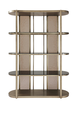 Полки из дымчатого стекла стильно дополняют акцентный силуэт стеллажа Mendez. Геометрия линий основания в оттенке nickel brush в его дизайне делают стеллаж стильным дополнением интерьера вашей гостиной.