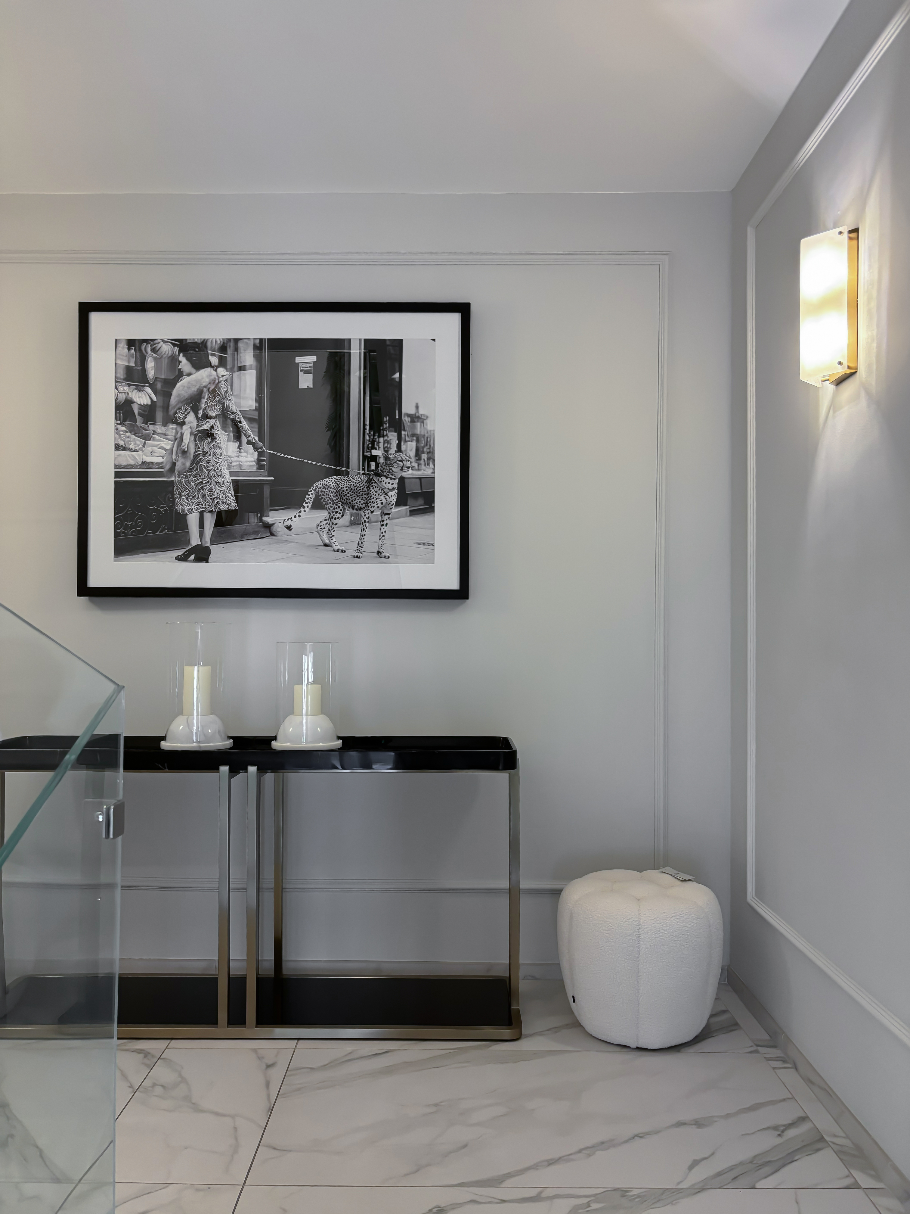 Консоль Jenna создаст в интерьере неповторимый образ элегантности и стиля. Он обращает на себя внимание за счет классического дизайна и изысканного сочетания мрамора, стекла и металла.