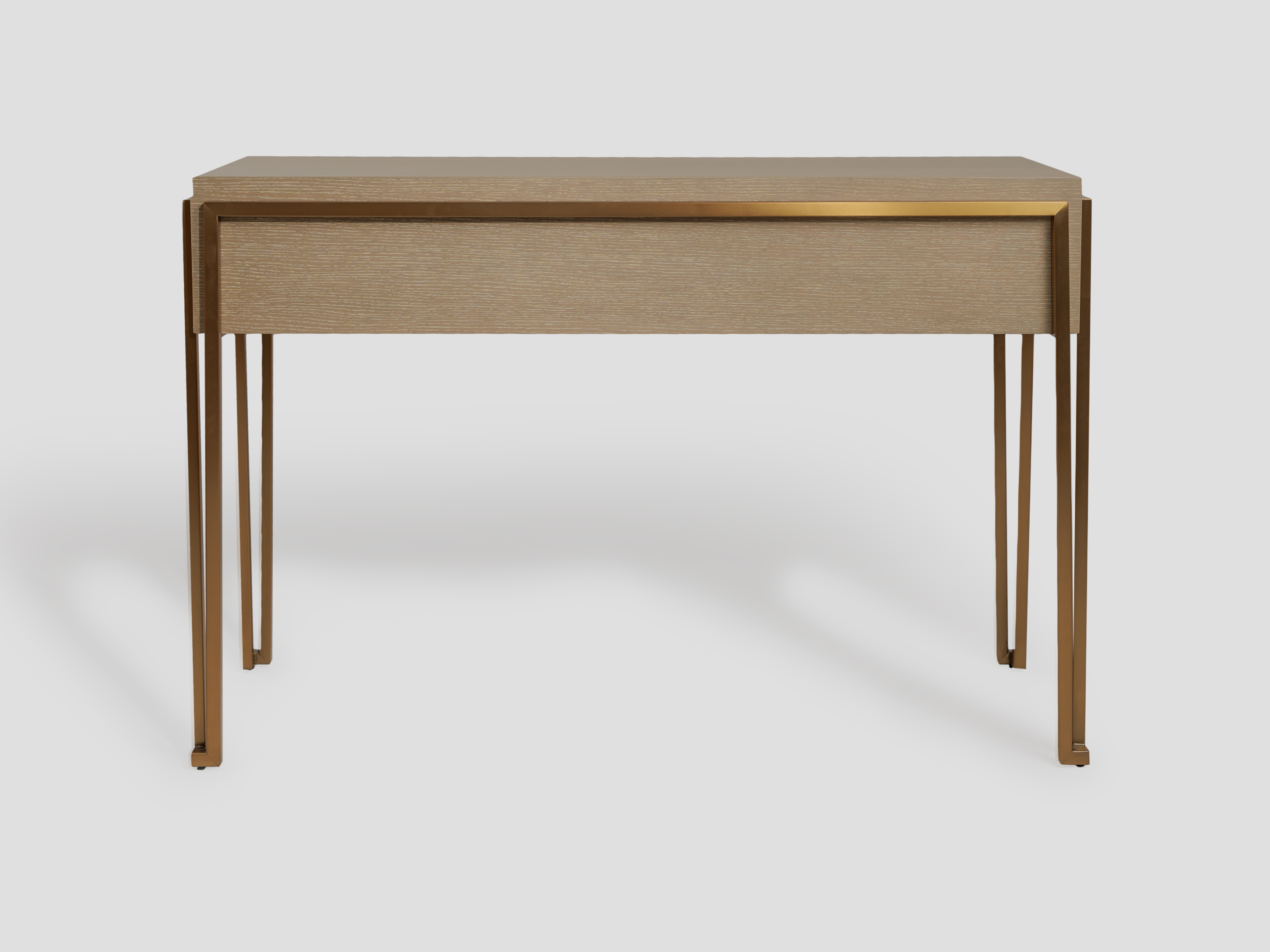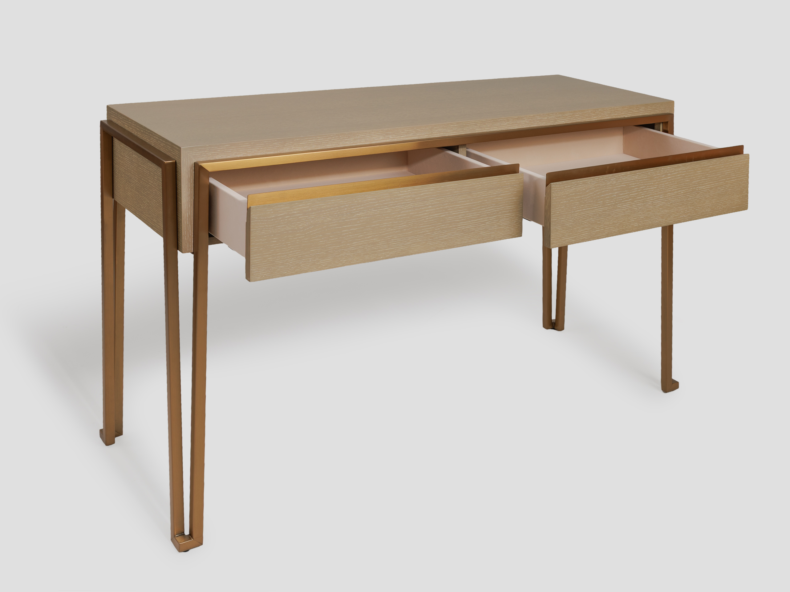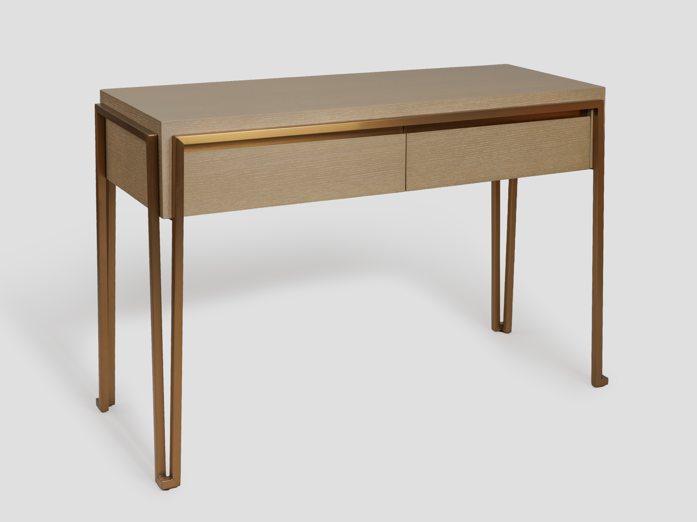 Металлическая деталь отделки, плавно переходящая в оригинальные ножки, добавляет письменному столу Arabe стильный акцент. Дополните им рабочую зону, задав тон всему интерьеру.