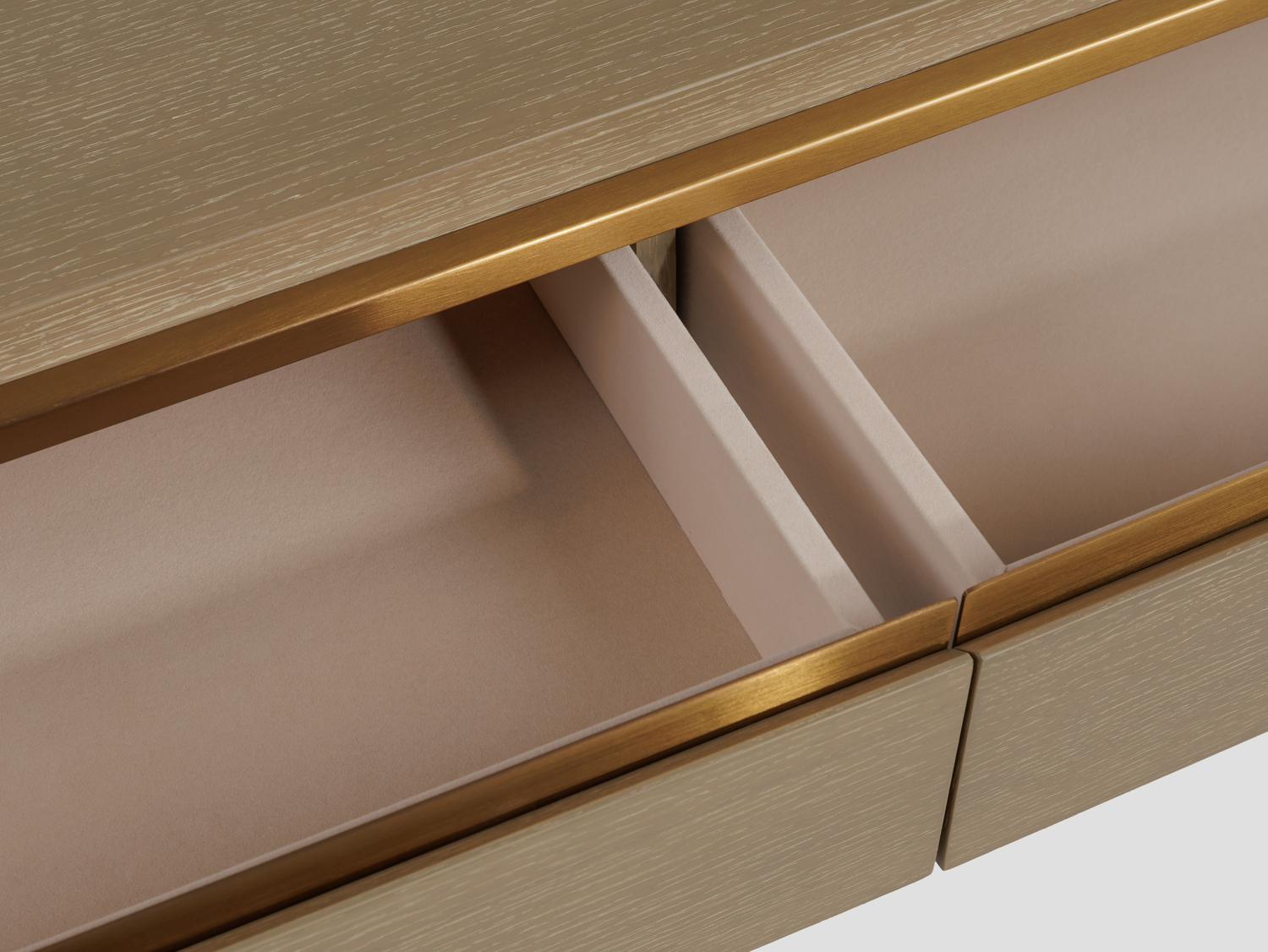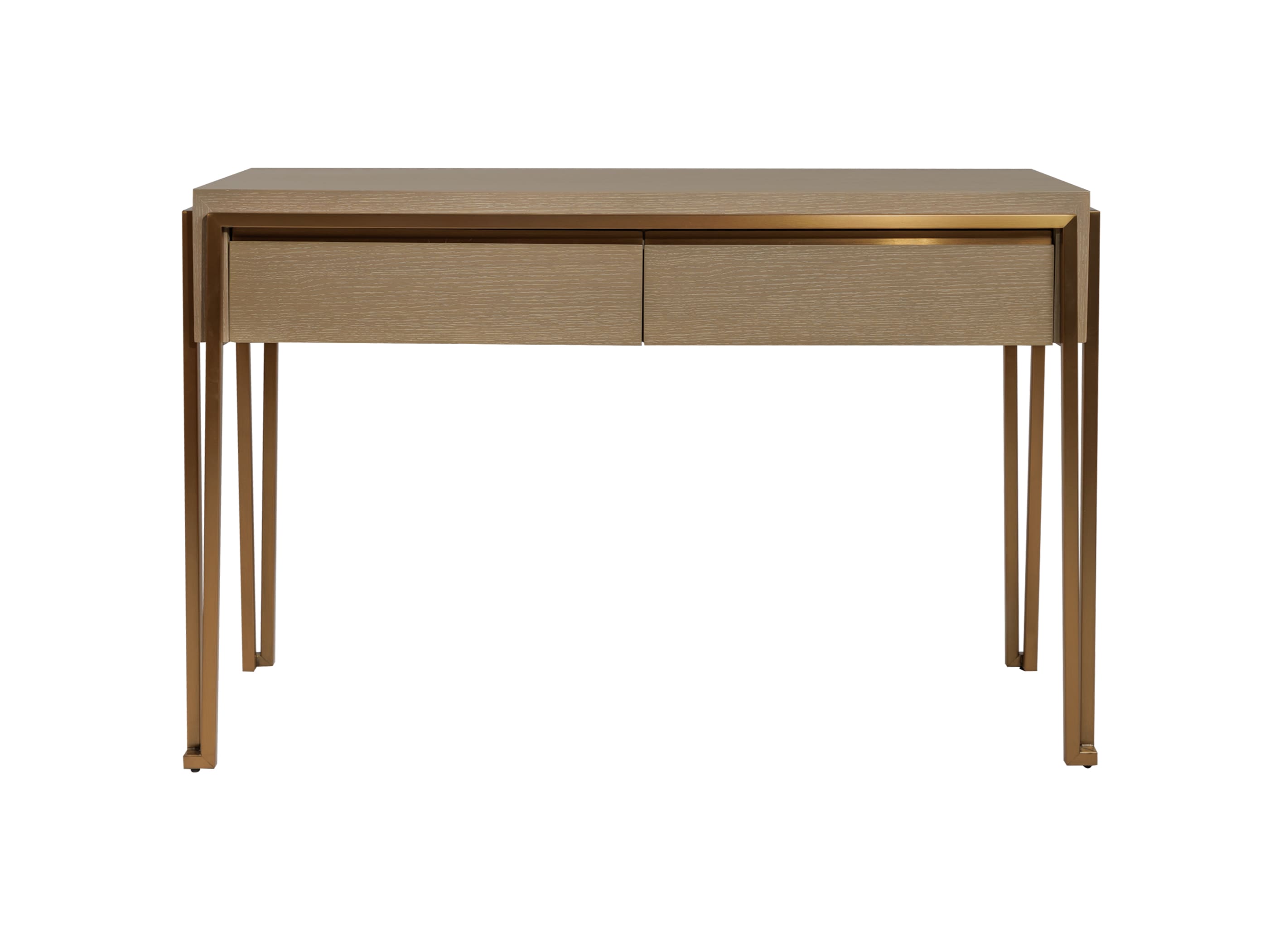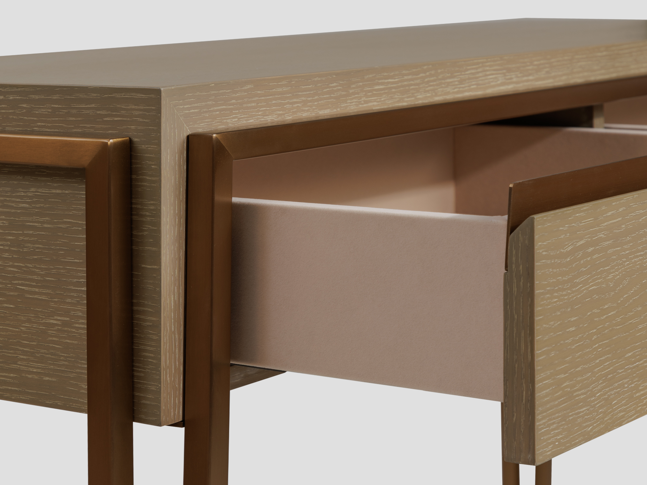 Металлическая деталь отделки, плавно переходящая в оригинальные ножки, добавляет письменному столу Arabe стильный акцент. Дополните им рабочую зону, задав тон всему интерьеру.