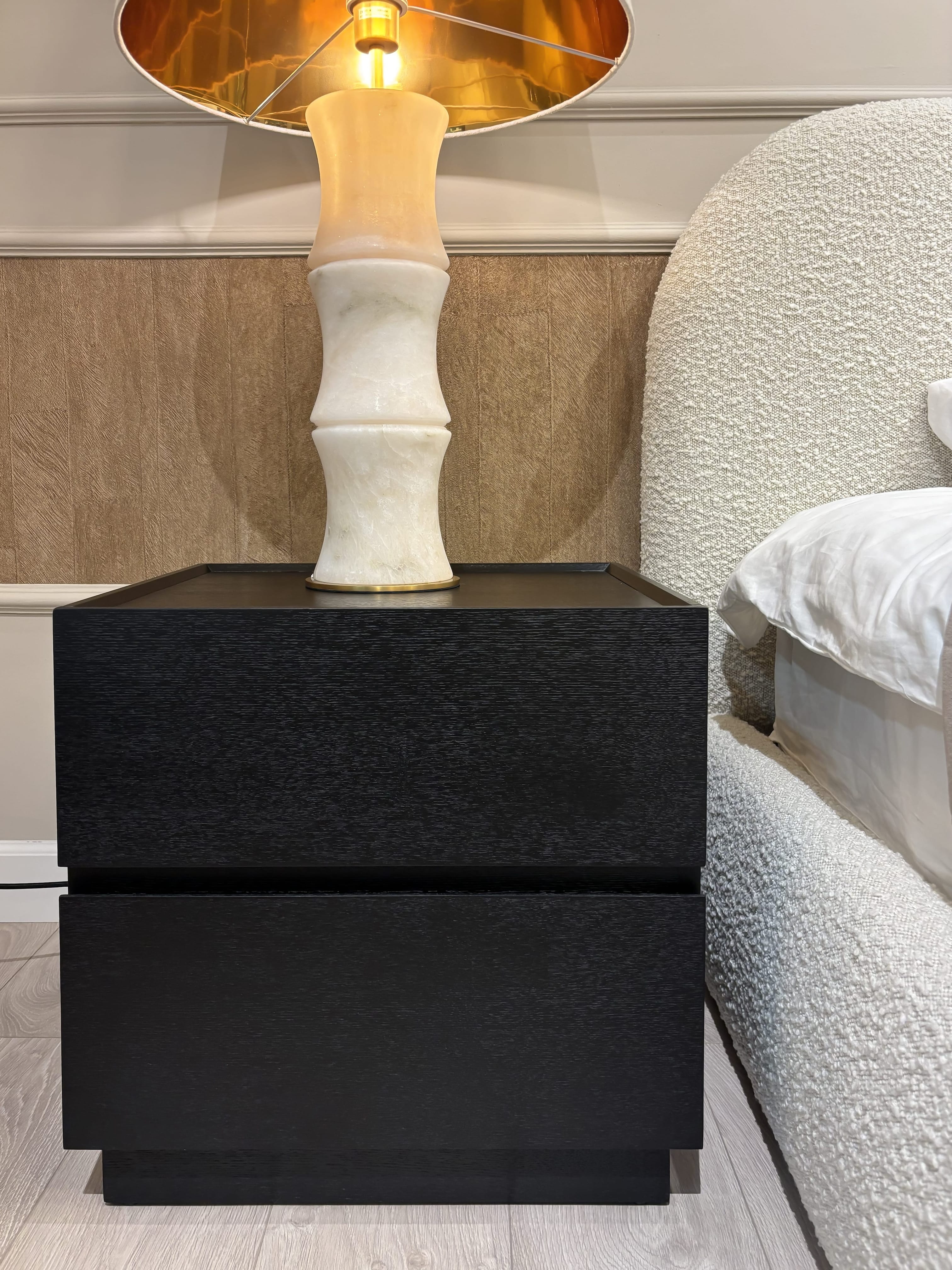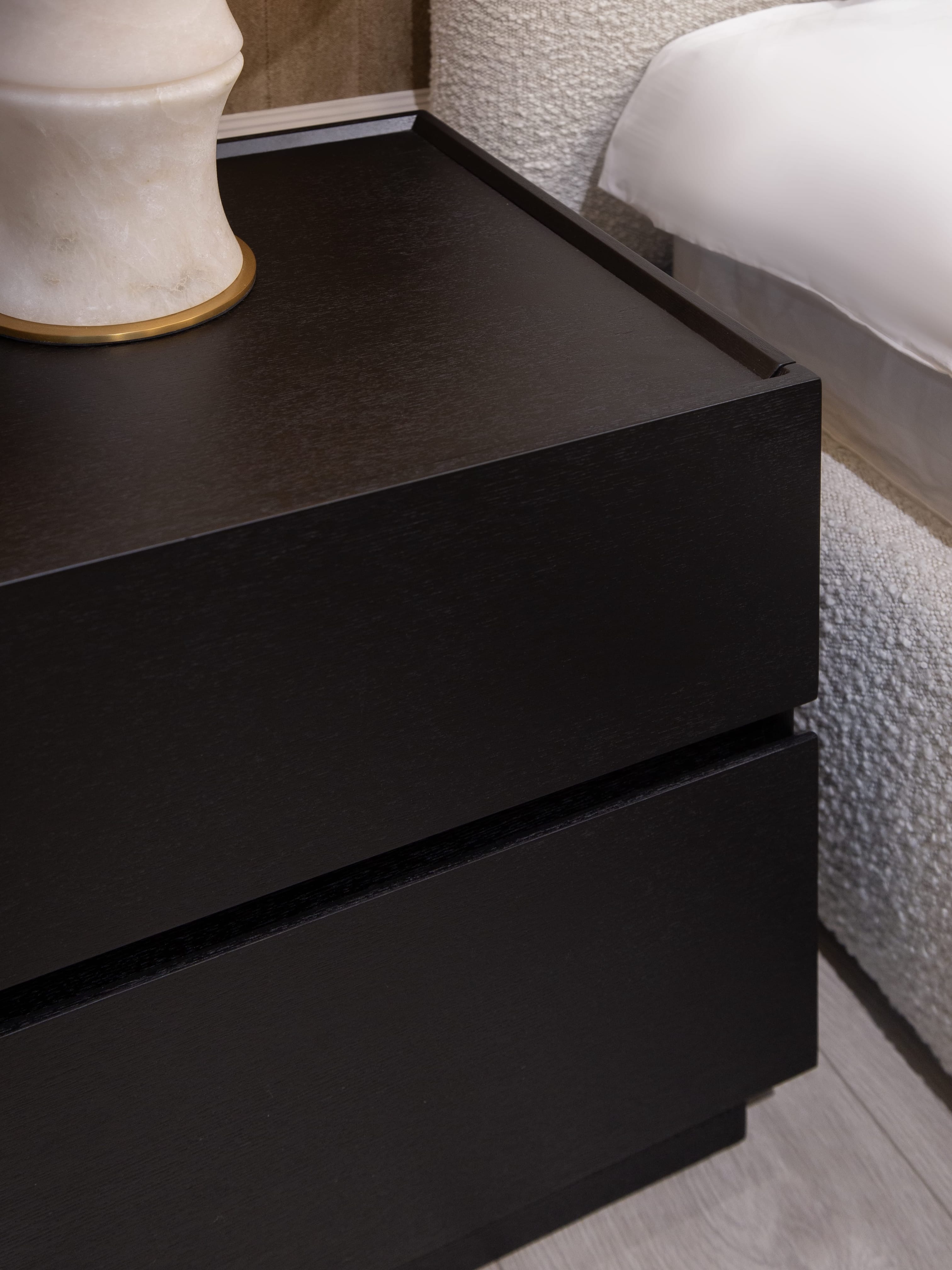 В прикроватной тумбе Bergen простая элегантность подчеркивается стильной текстурой натурального шпона. Благодаря лаконичному дизайну, она идеально дополнит интерьер спальни.