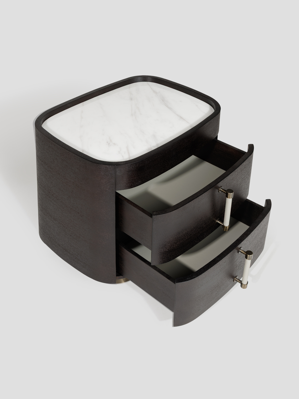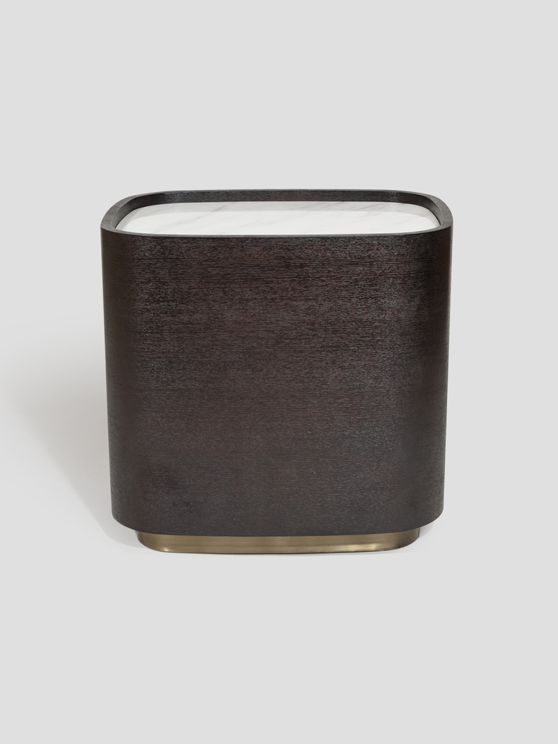 Прикроватная тумба Franzi прекрасно дополнит спальную зону благодаря плавности своих изящных линий. Выполненная из шпона с мраморной столешницей и металлическим основанием — это идеальное решение для интерьеров, где даже мельчайшие детали пронизаны элегантностью.