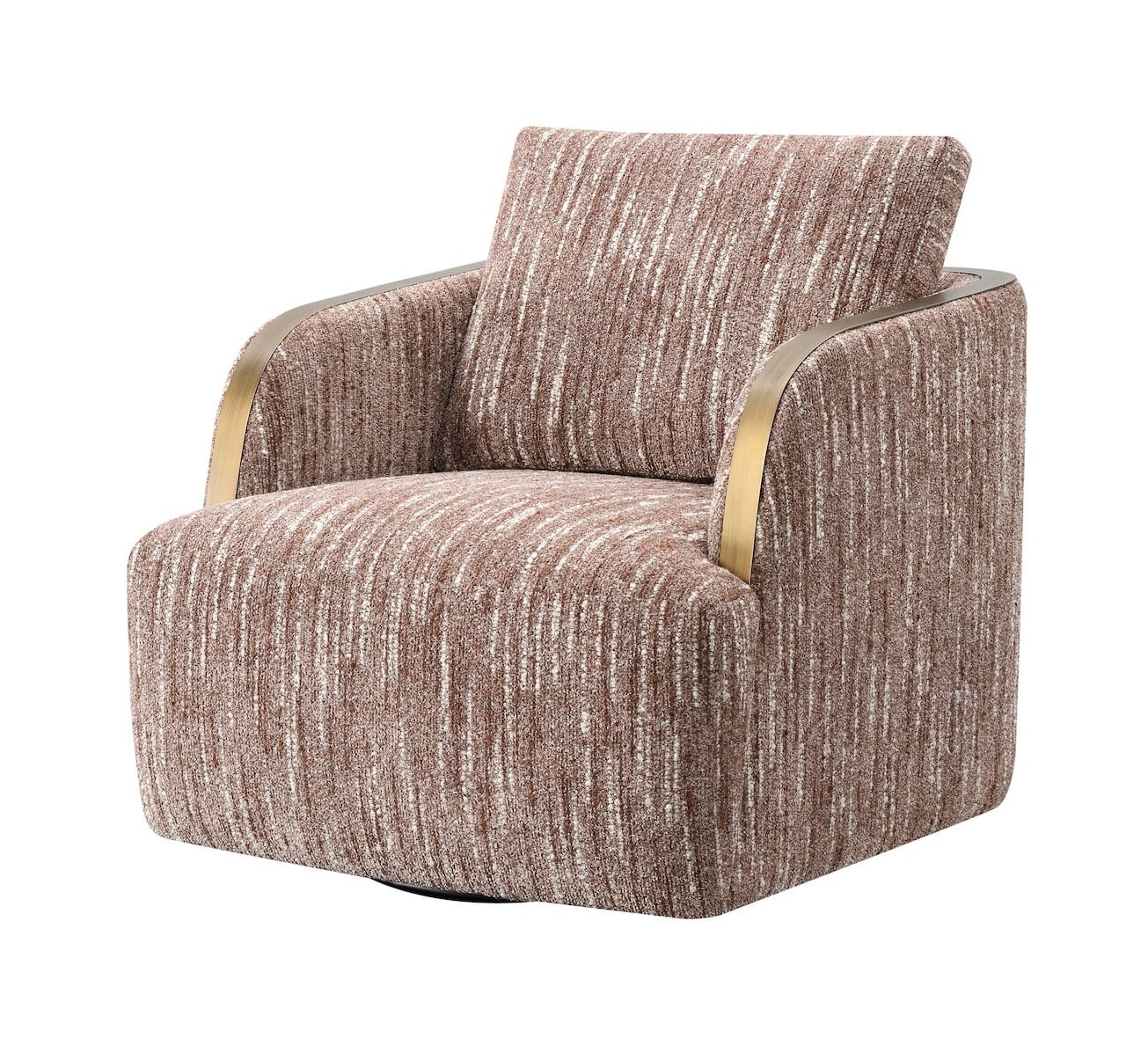 Вращающееся кресло Havi — это изысканное сочетание строгой геометрии и премиального комфорта. Латунные вставки на подлокотниках подчеркивают элегантный дизайн и добавляют модели благородный блеск. Ширина 85 см и пышная подушка обеспечивают максимальное расслабление, а скрытый поворотный механизм на 360° добавляет функциональности. Фактурная обивка в оттенке «песочный меланж» и монументальный силуэт превращают кресло Havi в ключевой интерьерный акцент современной гостиной или рабочего кабинета.