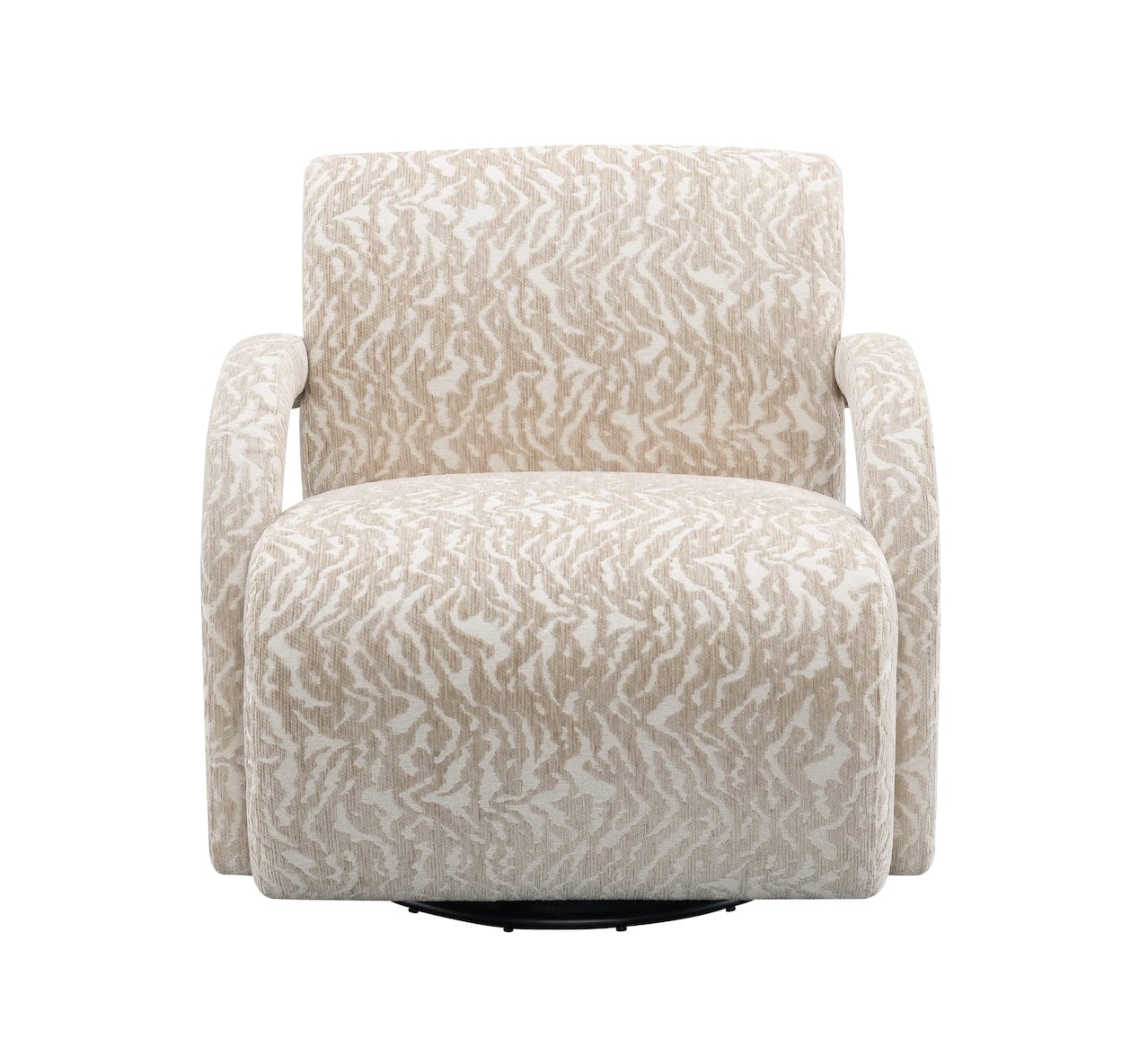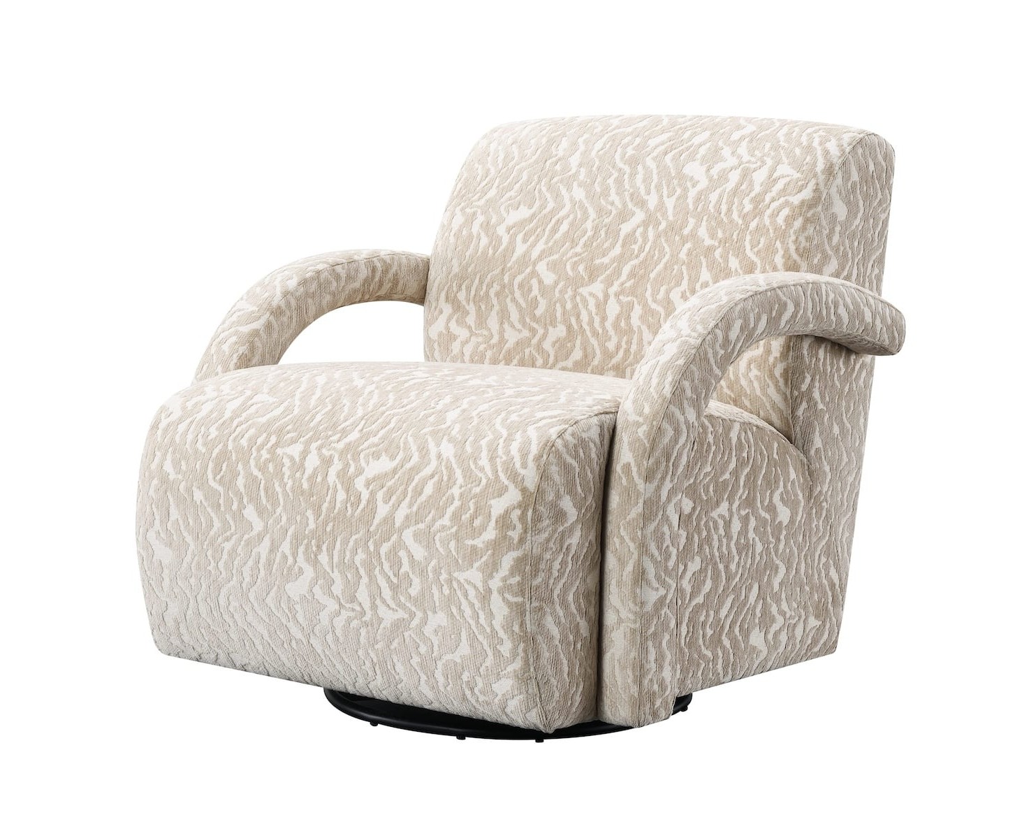 Вращающееся кресло-качалка Hush — это новый уровень комфорта, объединяющий плавное качание и свободу вращения на 360°. Уникальный дизайн с изогнутыми подлокотниками и пышными формами дополнен фактурным жаккардом с эффектным узором «зебра», который делает модель ярким акцентом в интерьере. Ширина 89 см и глубокая мягкая посадка обеспечивают максимальное расслабление, а скрытый механизм позволяет легко менять положение тела. Бежево-кремовая палитра и скульптурный силуэт превращают кресло Hush в идеальное решение для уютной зоны отдыха в гостиной или спальне.
