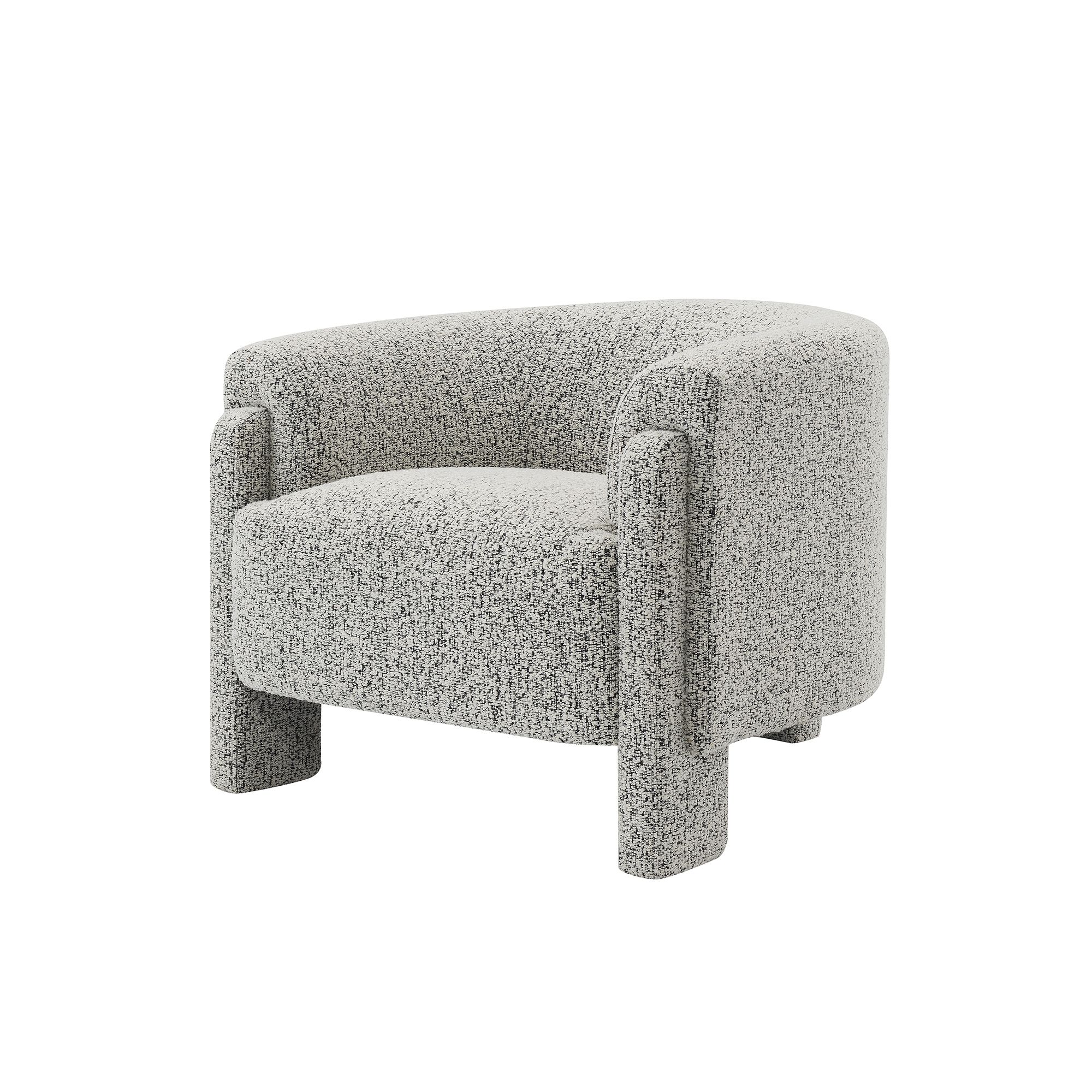 Кресло Kronk сочетает в себе лаконичность форм и продуманный комфорт. Полукруглая мягкая спинка словно обнимает своим силуэтом, создавая удобную посадку, а однотонная серая тканевая обивка придаёт ему сдержанную элегантность. Ножки, выполненные в той же обивке, создают эффект цельности, подчёркивая чистоту линий и современный характер дизайна.