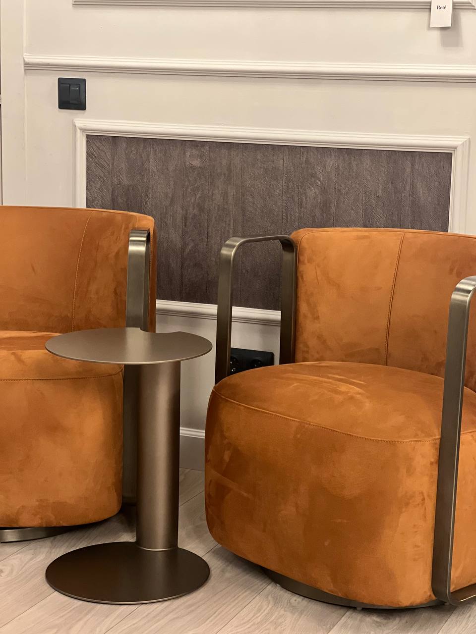 Эксклюзивный дизайн кресла Sigrid подчеркивают лаконичные подлокотники из брашированной нержавеющей стали под латунь. Кресло, вдохновленное стилем мебели семидесятых годов, станет элегантным дополнением для вашей гостиной или спальни.