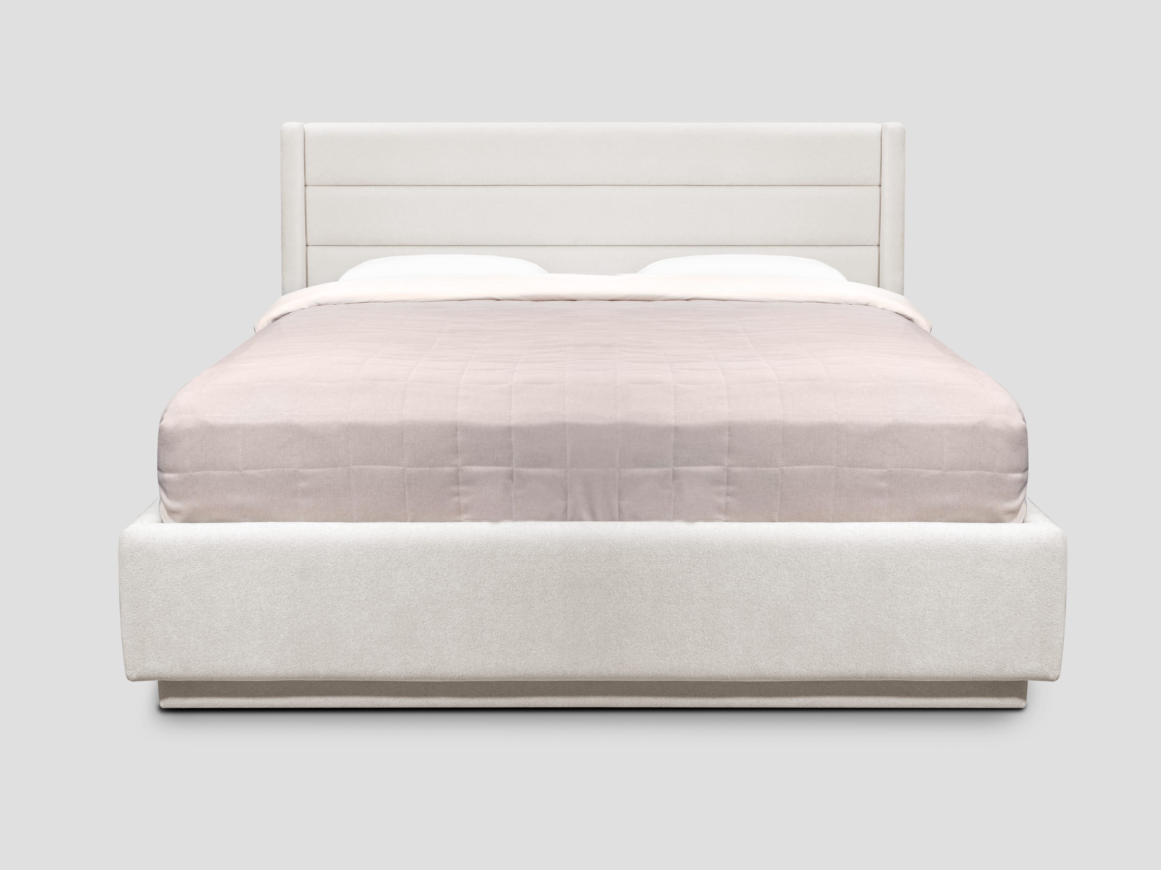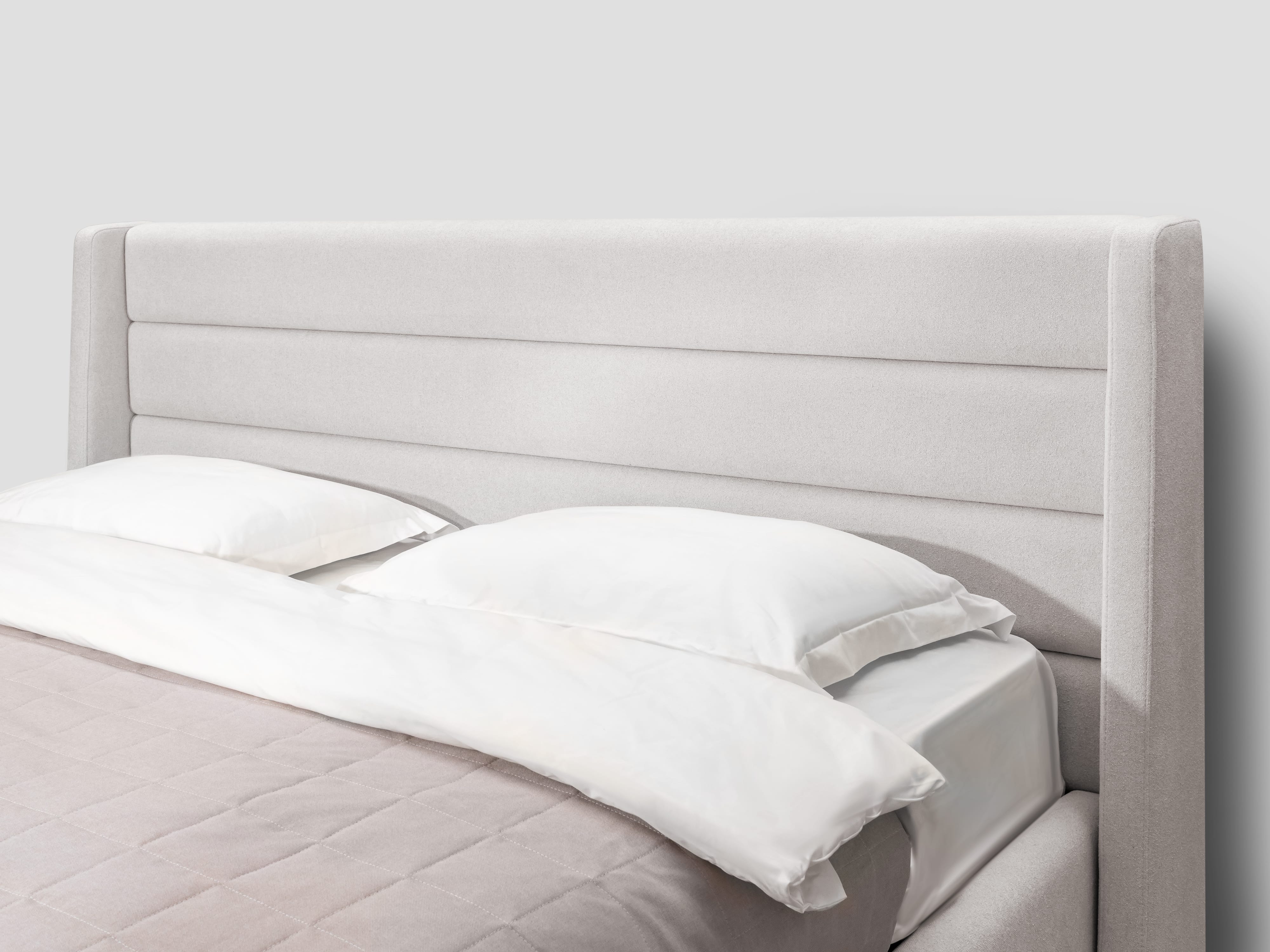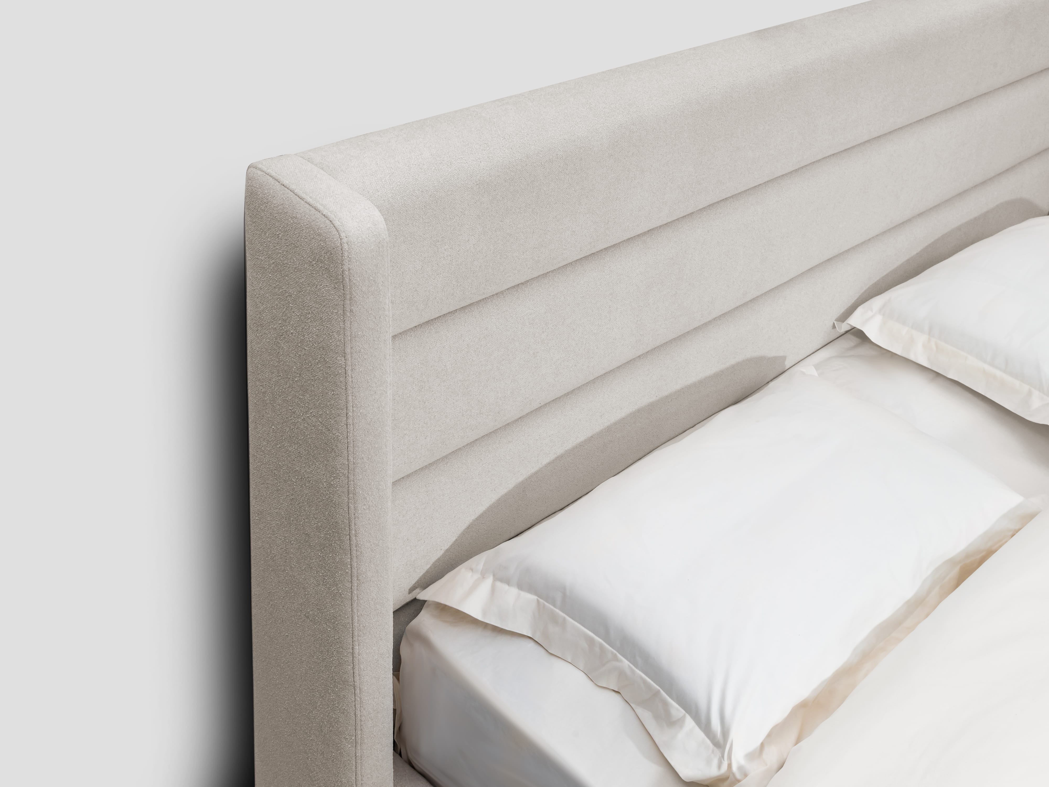 Мягкие изгибы и плавные линии создают привлекательный образ кровати Dakota. Высокое изголовье образованное из горизонтальных элементов с фактурной обивкой тканью букле делает ее стильным украшением спальни как в классическом, так и в современном интерьере.