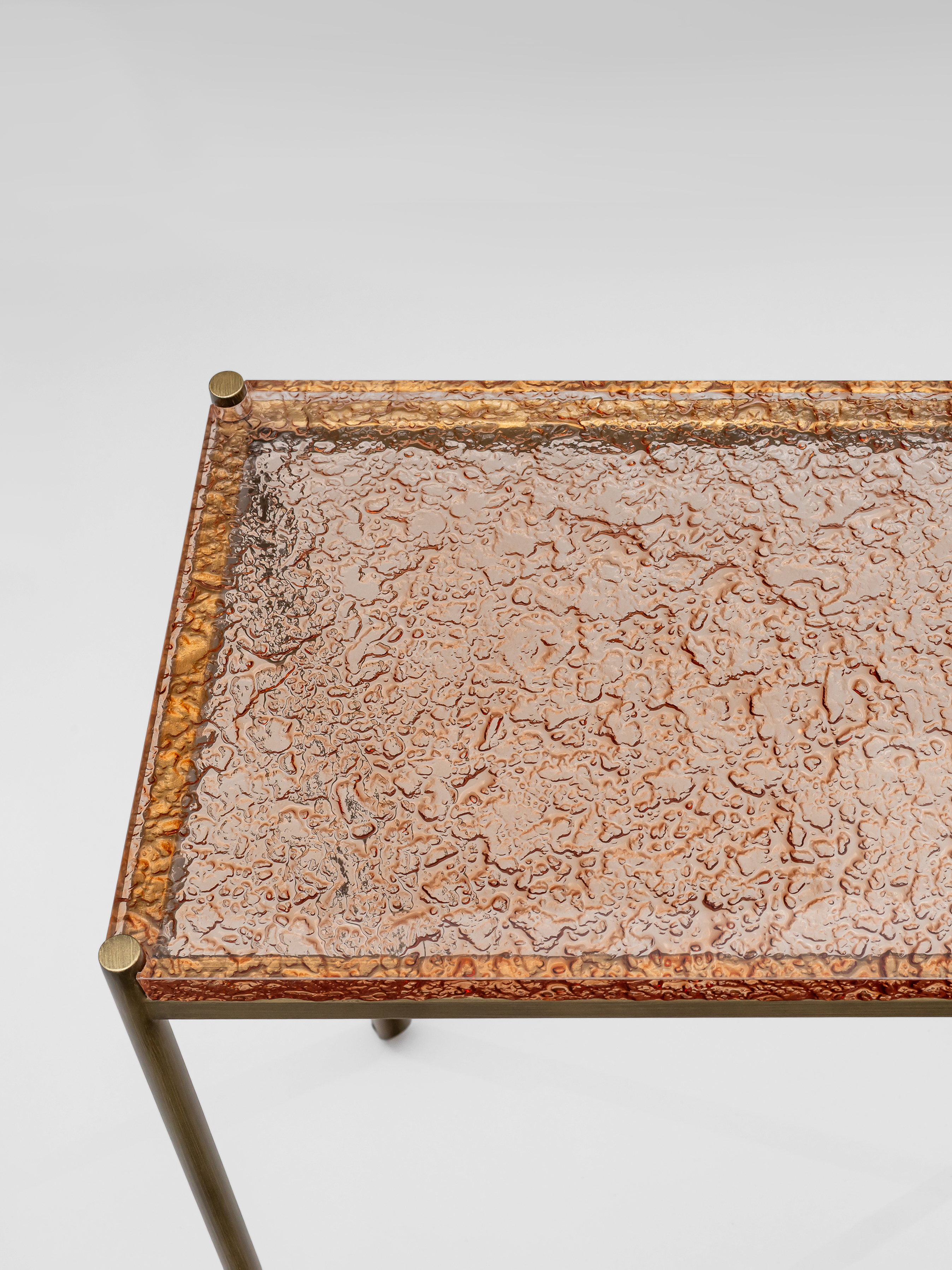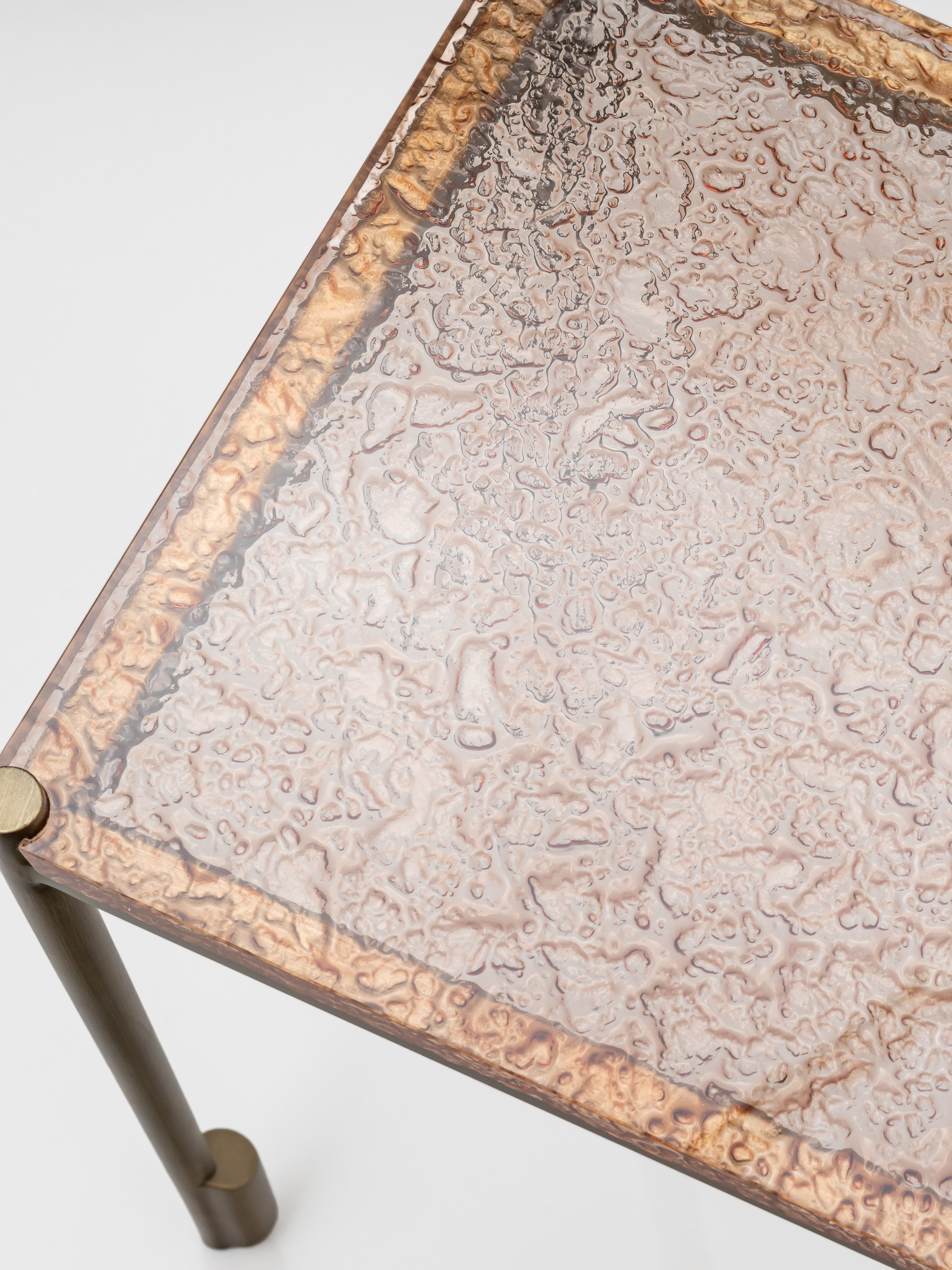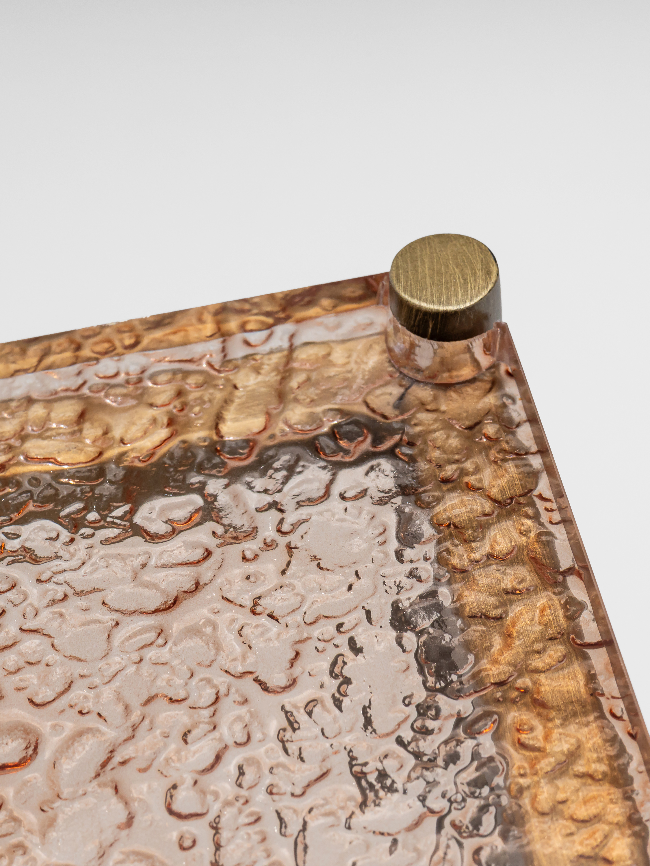 Приставной стол Denton на тонких металлических ножках очаровывает своей изысканностью и легкостью. Столешница из акрила с рельефной фактурой создает интересную игру света и текстур, добавляя столу динамичность и современный шик. Этот элегантный предмет мебели станет функциональным украшением интерьера, подчеркивая его стиль и утонченность.