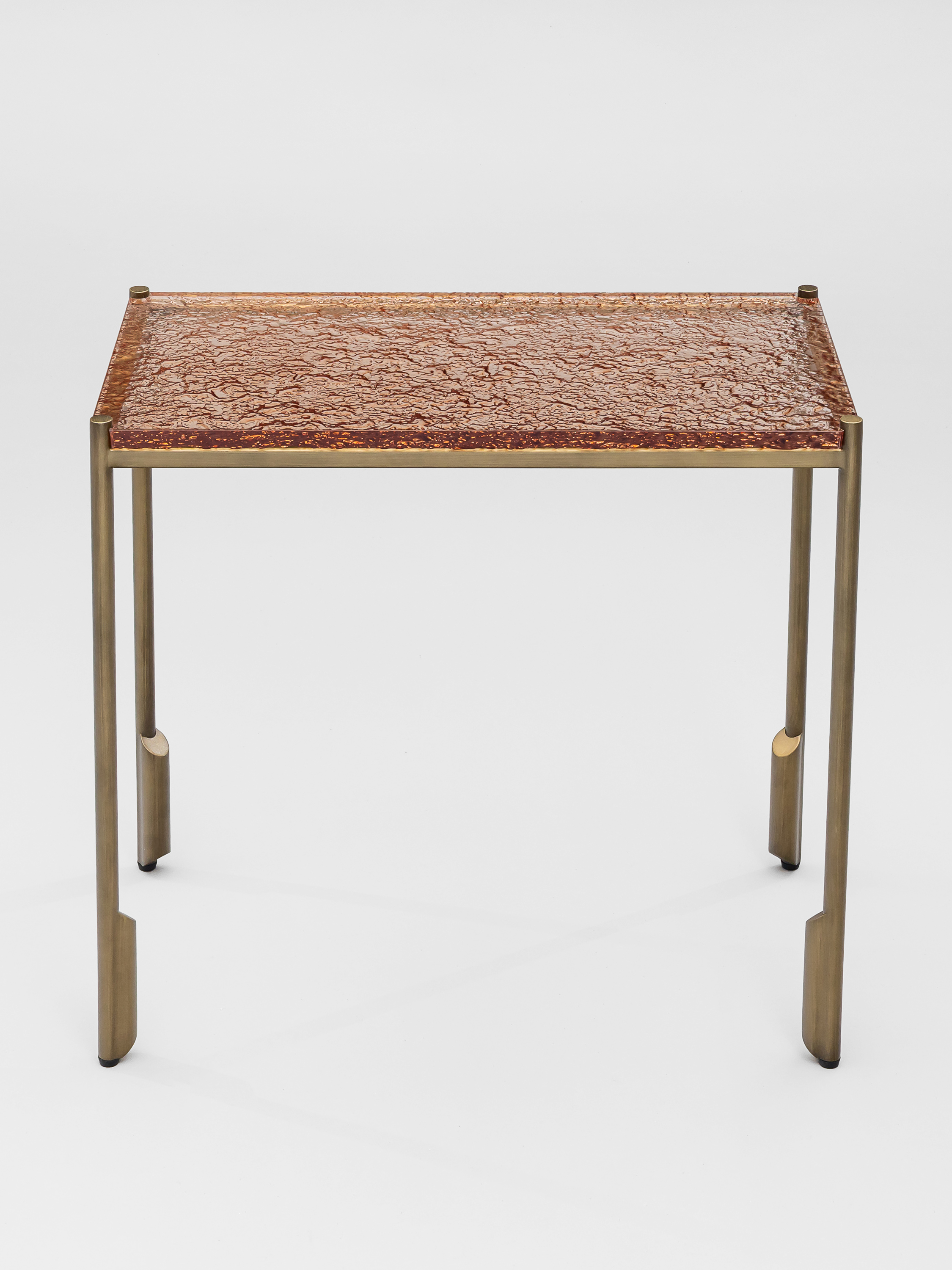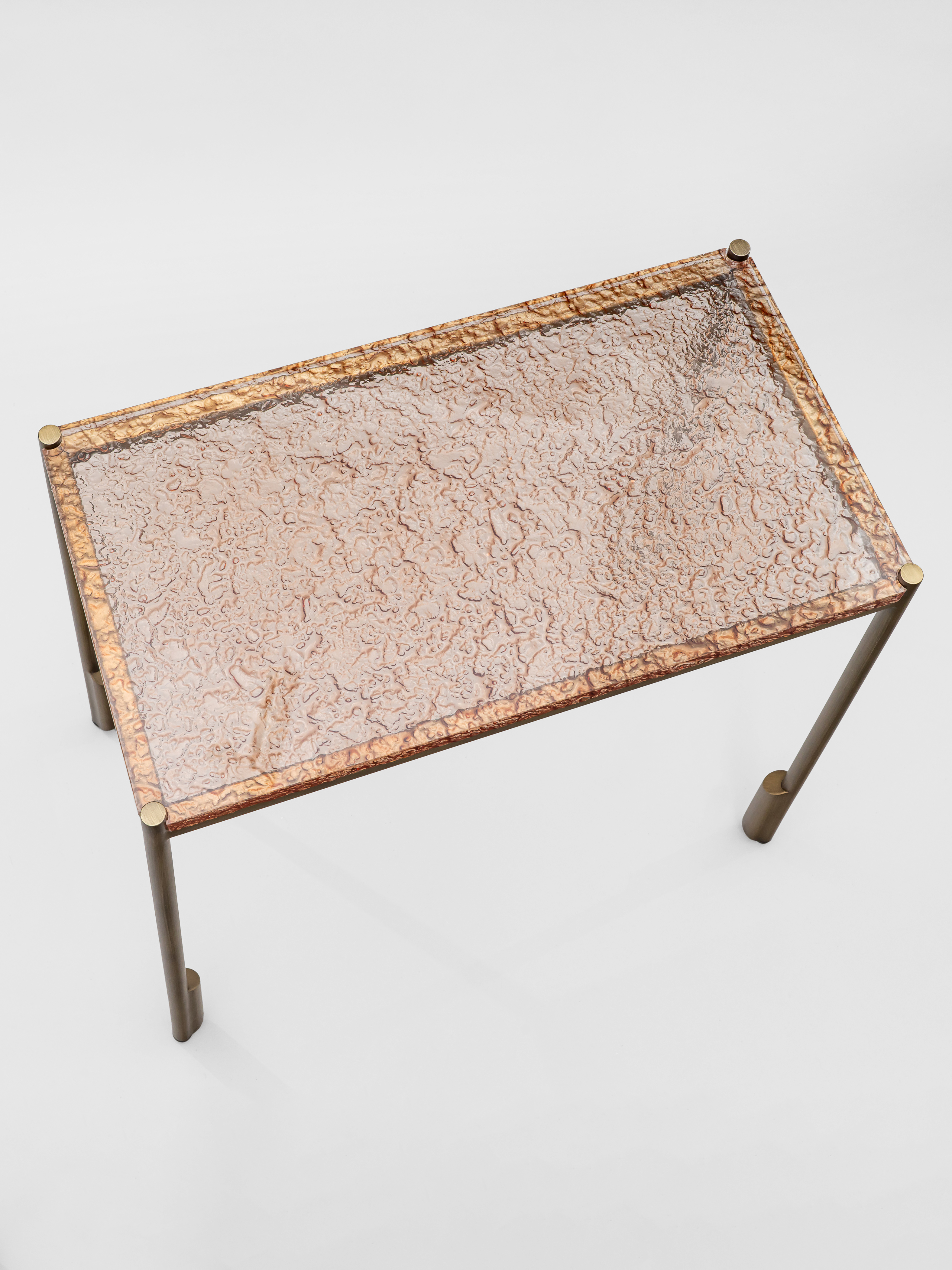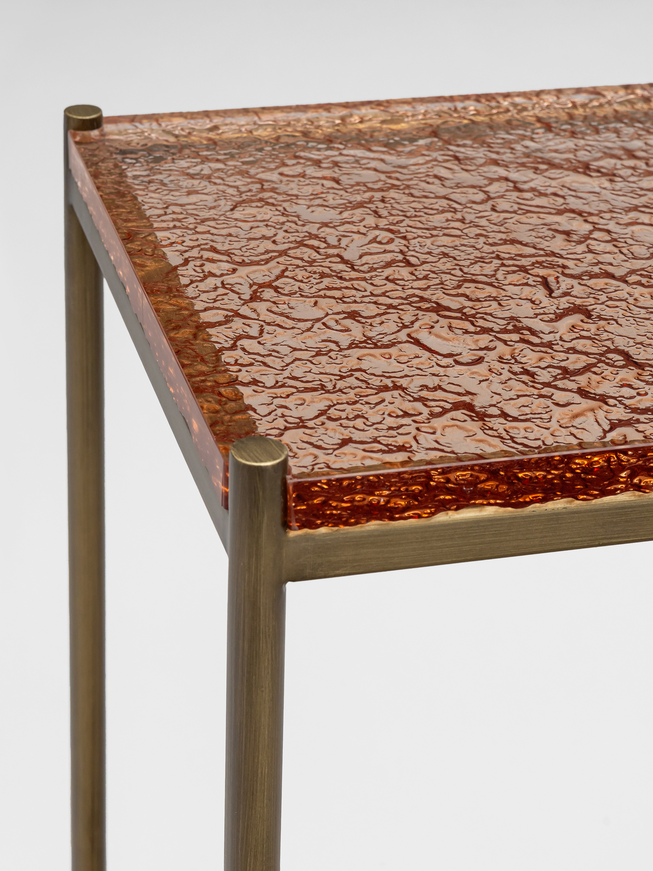 Приставной стол Denton на тонких металлических ножках очаровывает своей изысканностью и легкостью. Столешница из акрила с рельефной фактурой создает интересную игру света и текстур, добавляя столу динамичность и современный шик. Этот элегантный предмет мебели станет функциональным украшением интерьера, подчеркивая его стиль и утонченность.