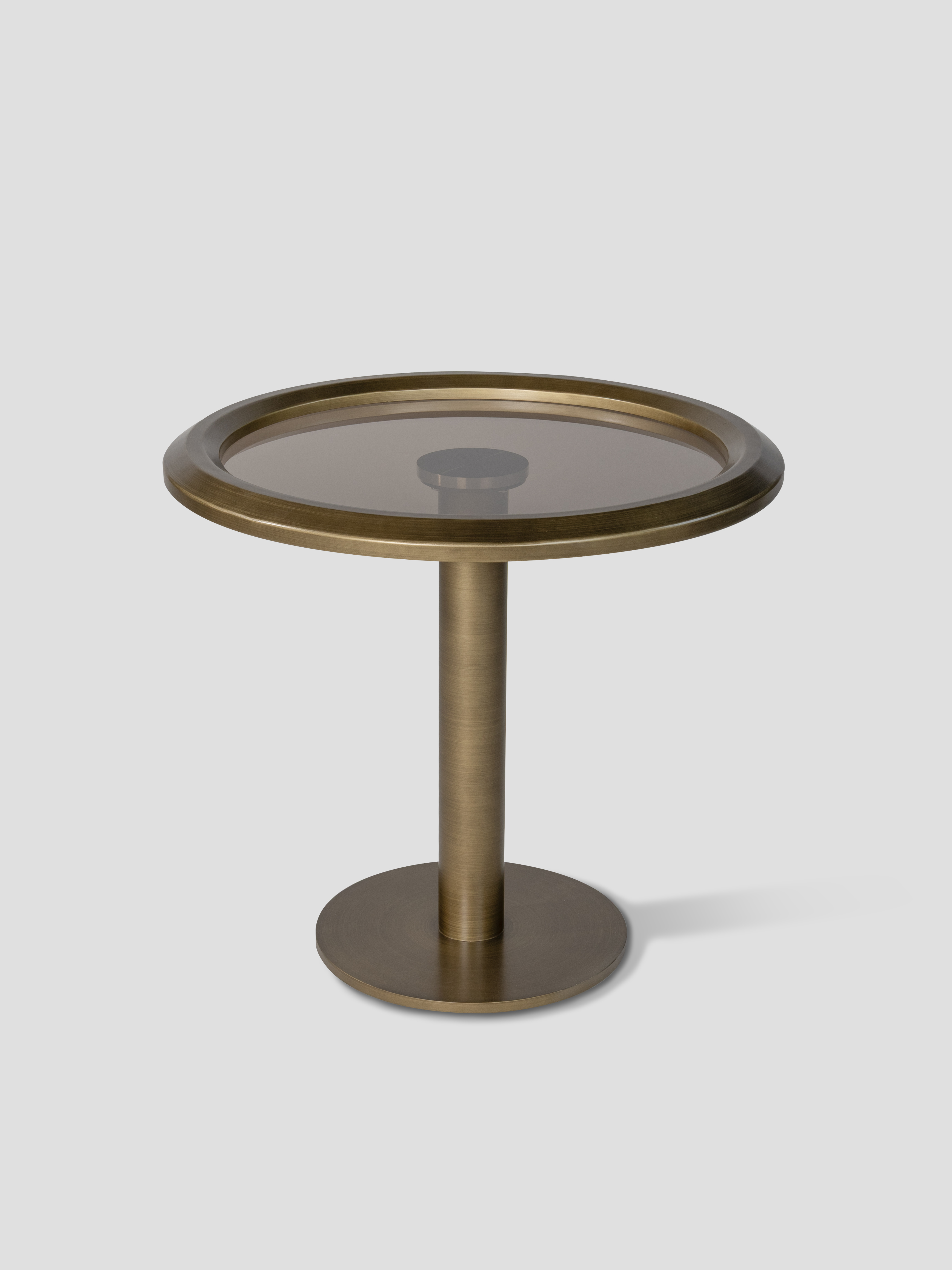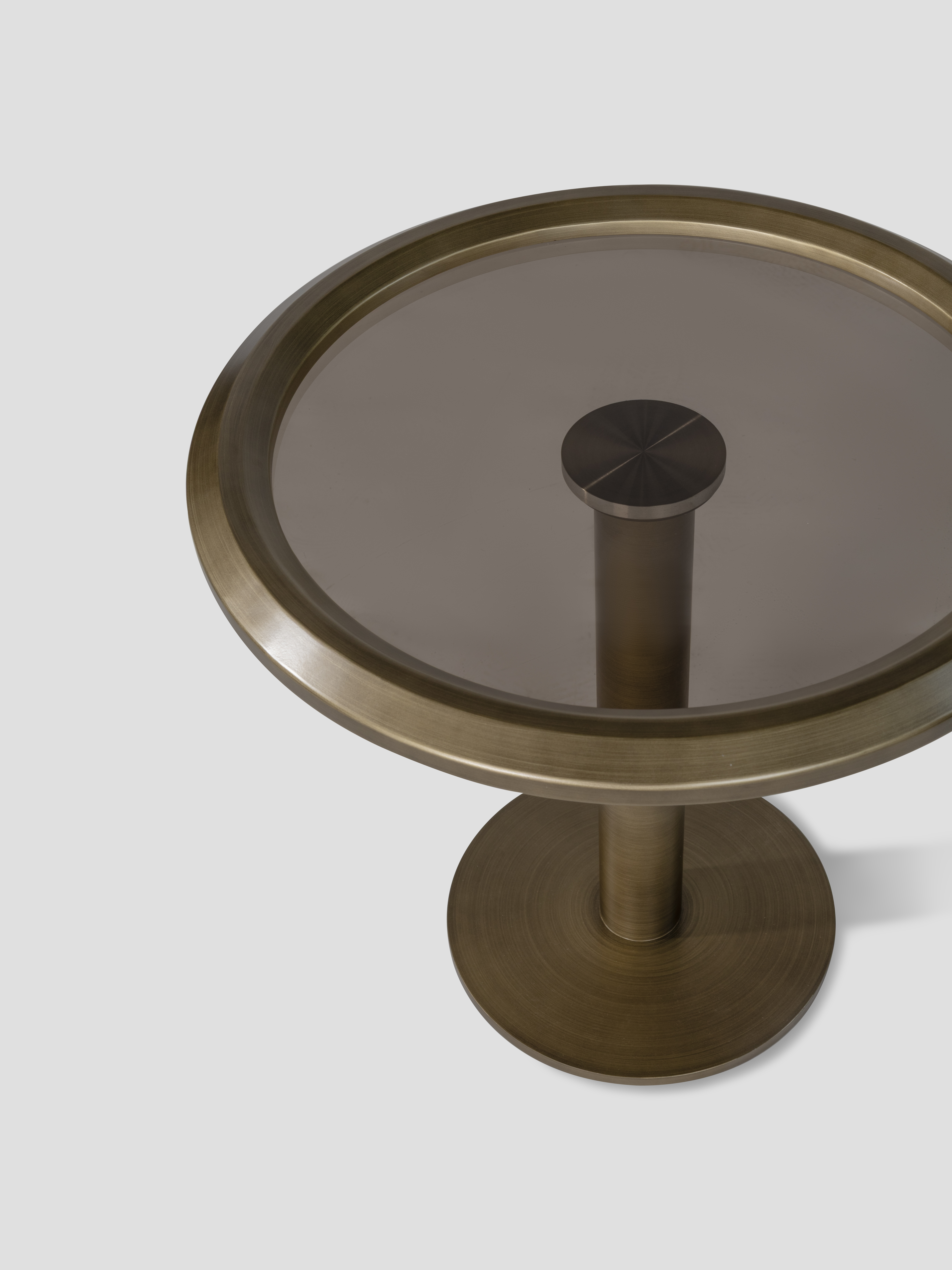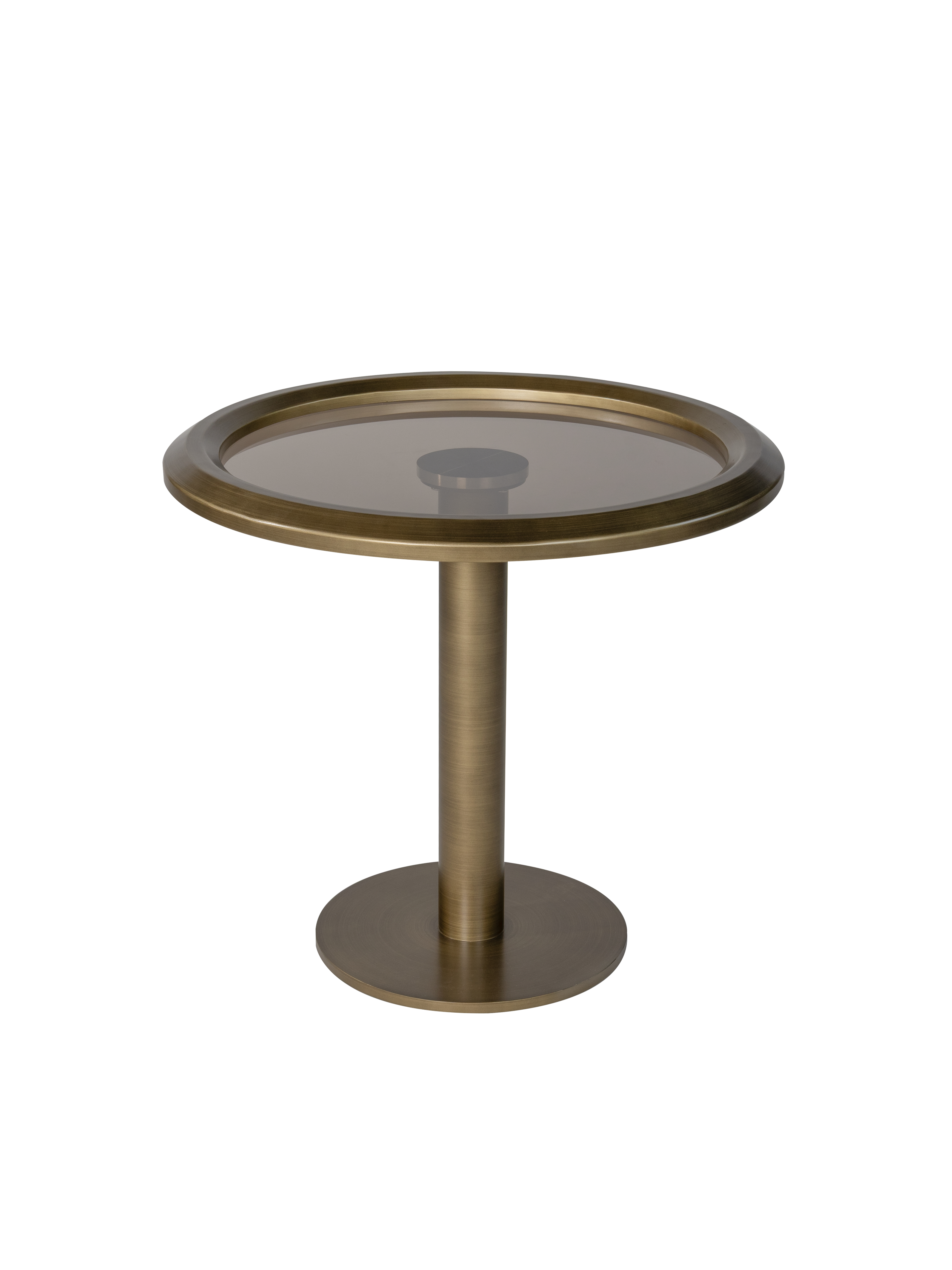 Элегантный круглый приставной стол Gang в минималистичном стиле — идеальный акцент для гостиной, спальни или прихожей. Металлическое основание и тонированная стеклянная столешница создают лаконичный, современный образ. Гладкие линии и сдержанная роскошь — для уюта и гармонии в любом интерьере.