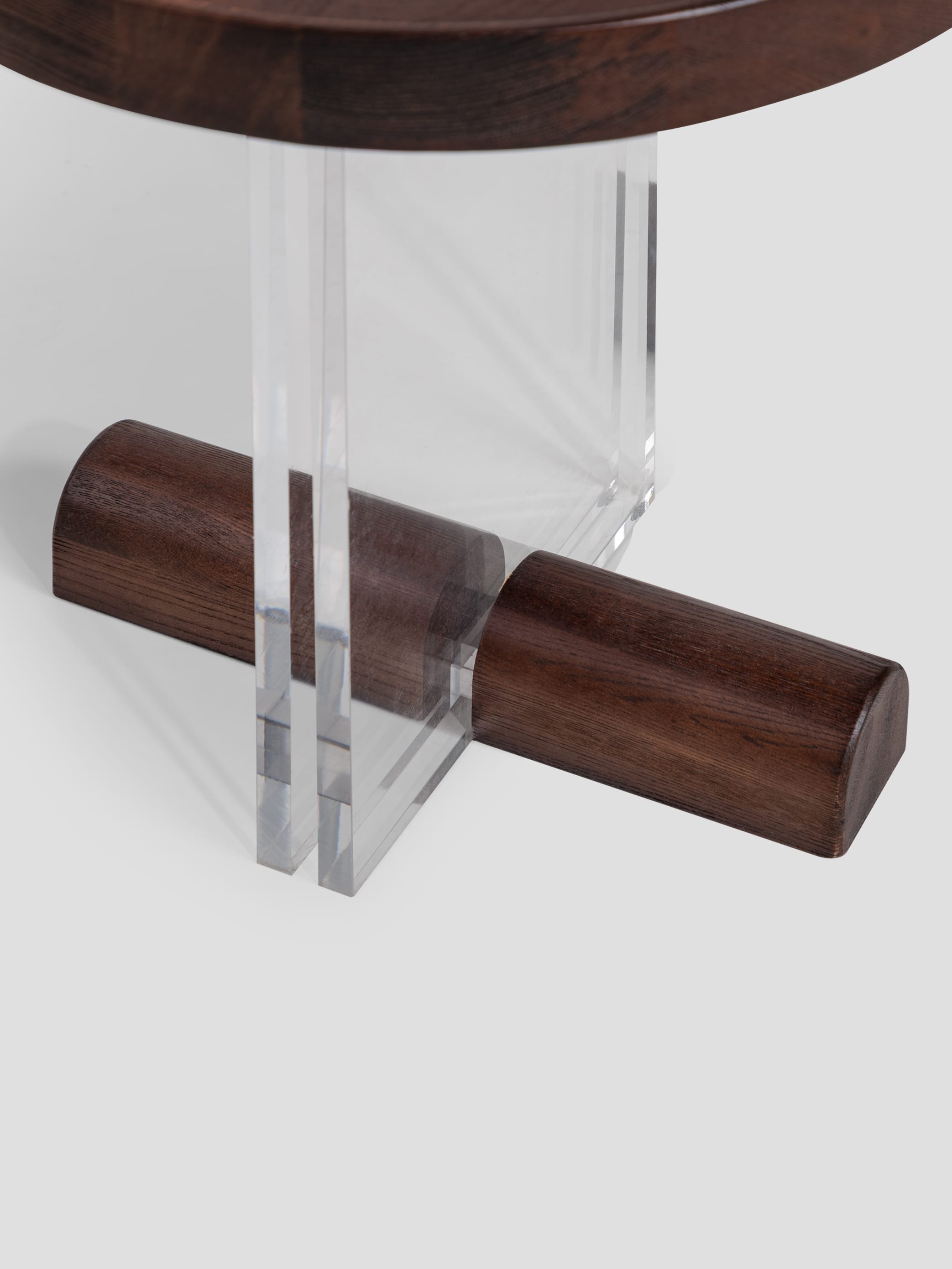 Приставной стол Murten, сочетающий прозрачное акриловое основание и изящные деревянные элементы, воплощает стильный минимализм. Круглая столешница из натурального дерева добавляет его дизайну тепло и утончённость, а округлая деревянная ножка создаёт ощущение гармонии и устойчивости. Прозрачное основание визуально облегчает конструкцию, делая стол идеальным выбором для современных интерьеров.