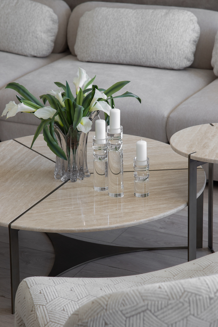 Журнальный стол Карон — это лаконичная дизайнерская мебель, которая привнесет природную гармонию в ваш современный интерьер. Столешница, разделенная на три сегмента, выполнена из натурального травертина с его характерным рельефом и мягкими песочными оттенками. Металлическое основание с гальваническим покрытием обеспечивает модели безупречную устойчивость и долговечный благородный блеск. Благодаря архитектурной точности линий и союзу камня с металлом, столик станет стильным акцентом в гостиной в стиле минимализм или лофт. Этот предмет интерьера идеально сочетает в себе монументальность натурального камня и легкость современных форм.