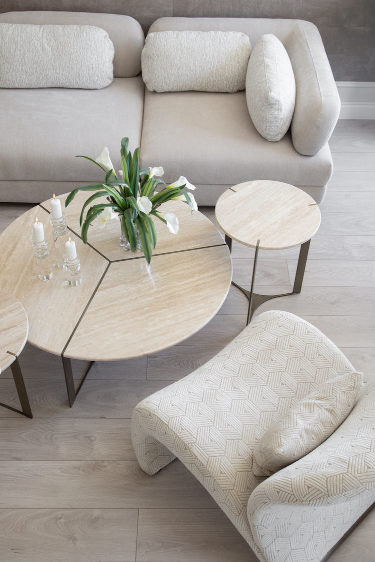 Журнальный стол Карон круглый, столешница из травертина