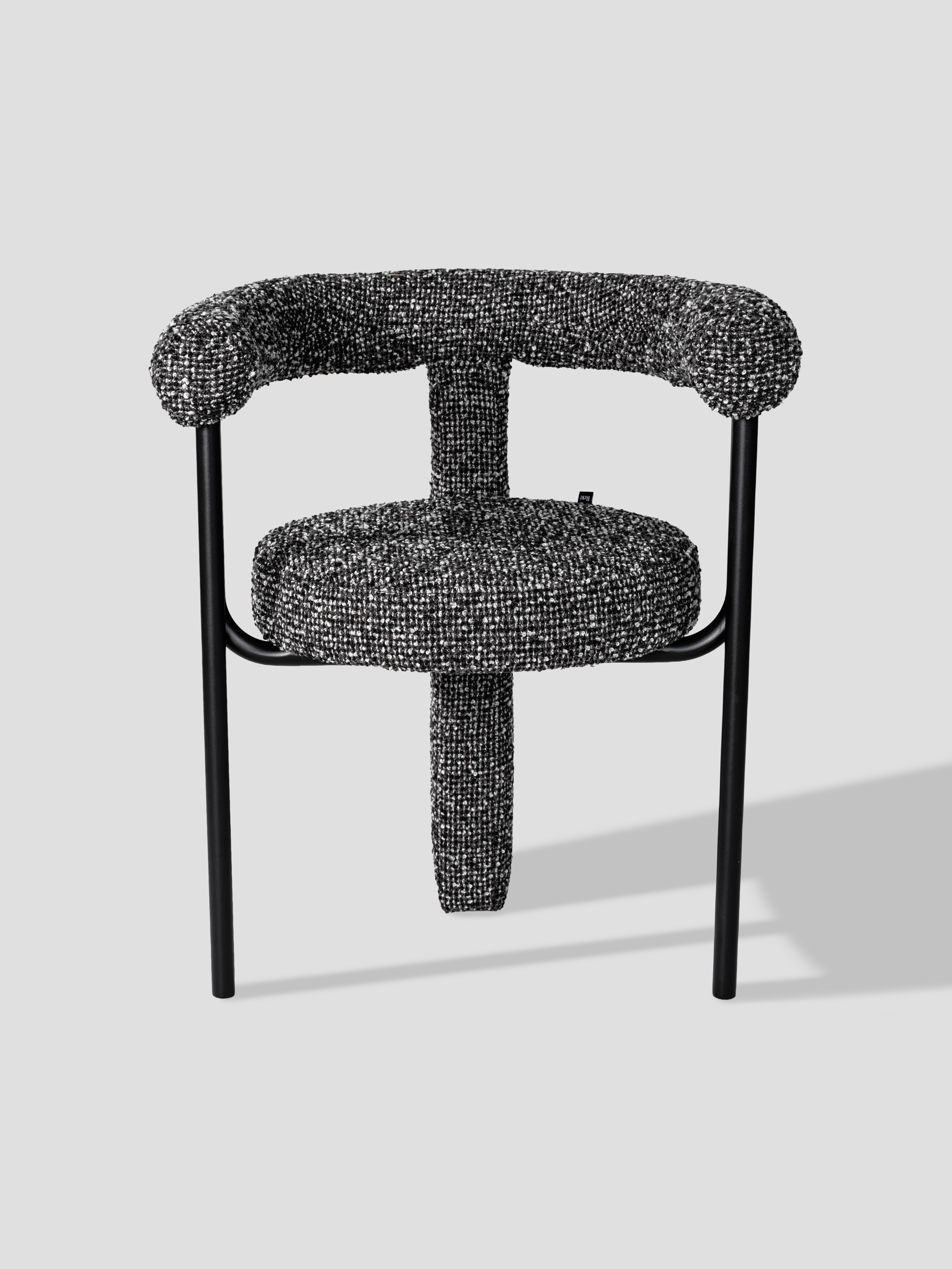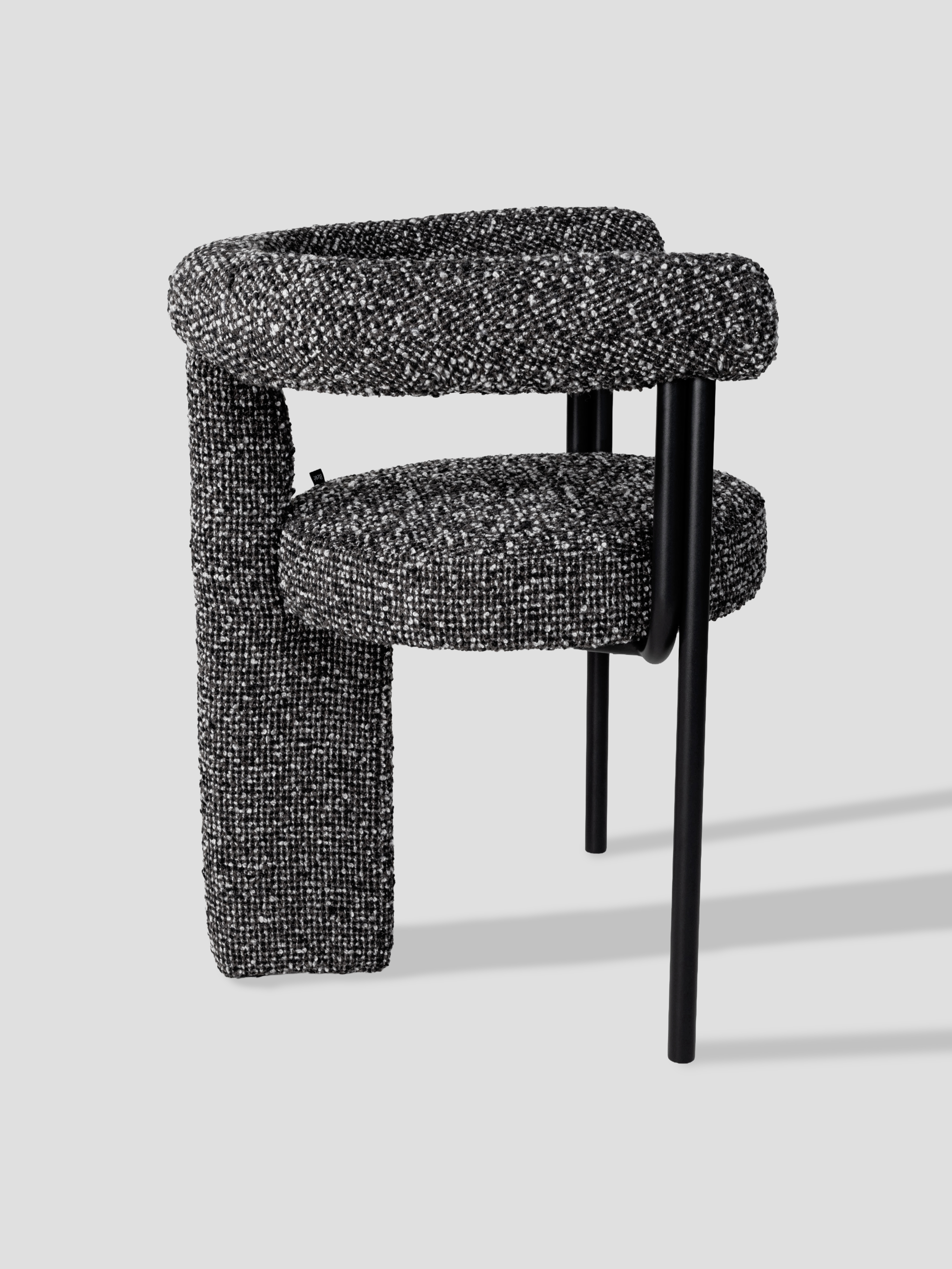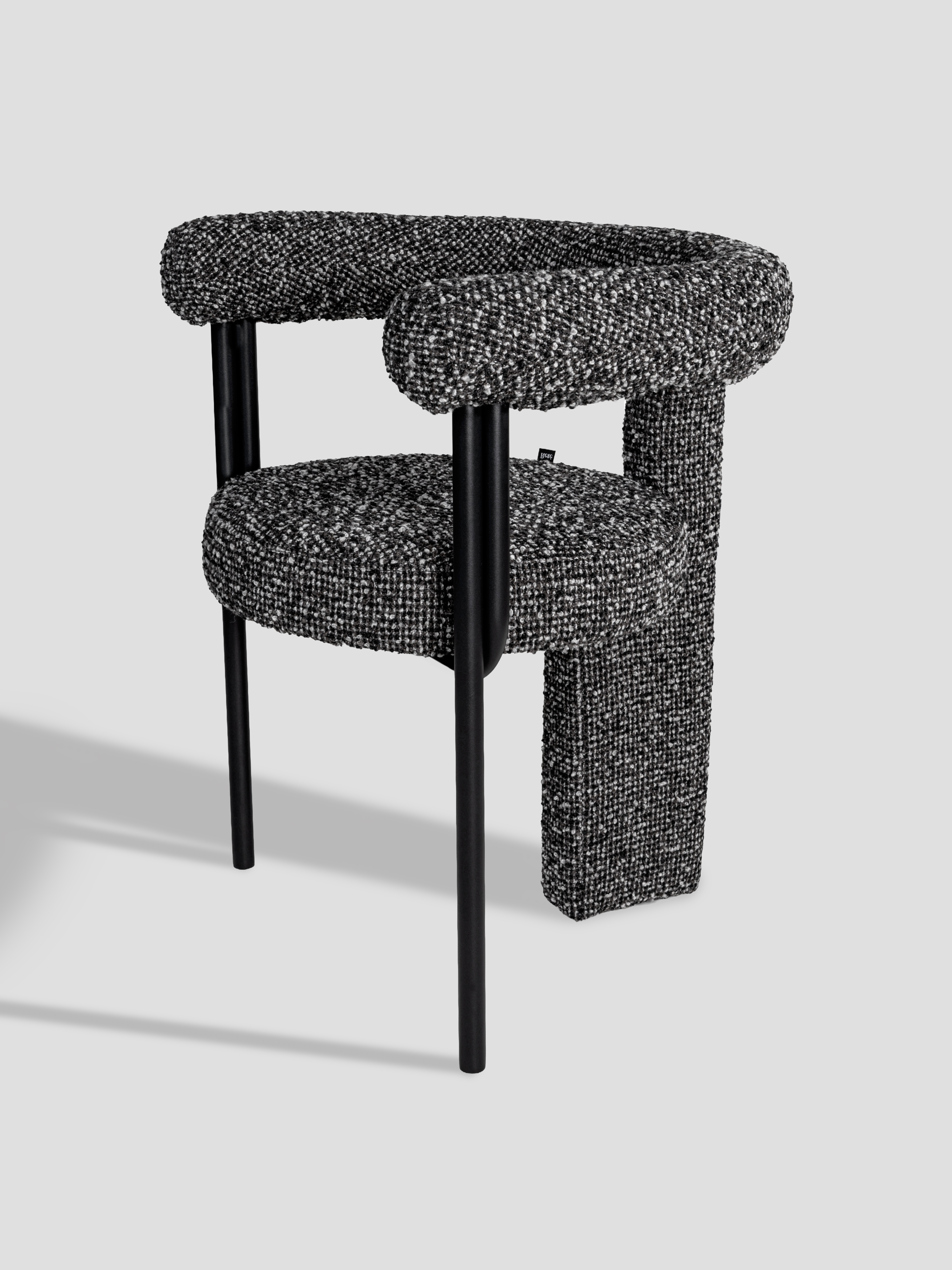 Обеденный стул Ferro отличается особым соединением спинки и подлокотников, что придает ему идеальное сочетание стиля и комфорта. Основание из металла и темно-серая обивка подчеркивают элегантную геометрию форм.