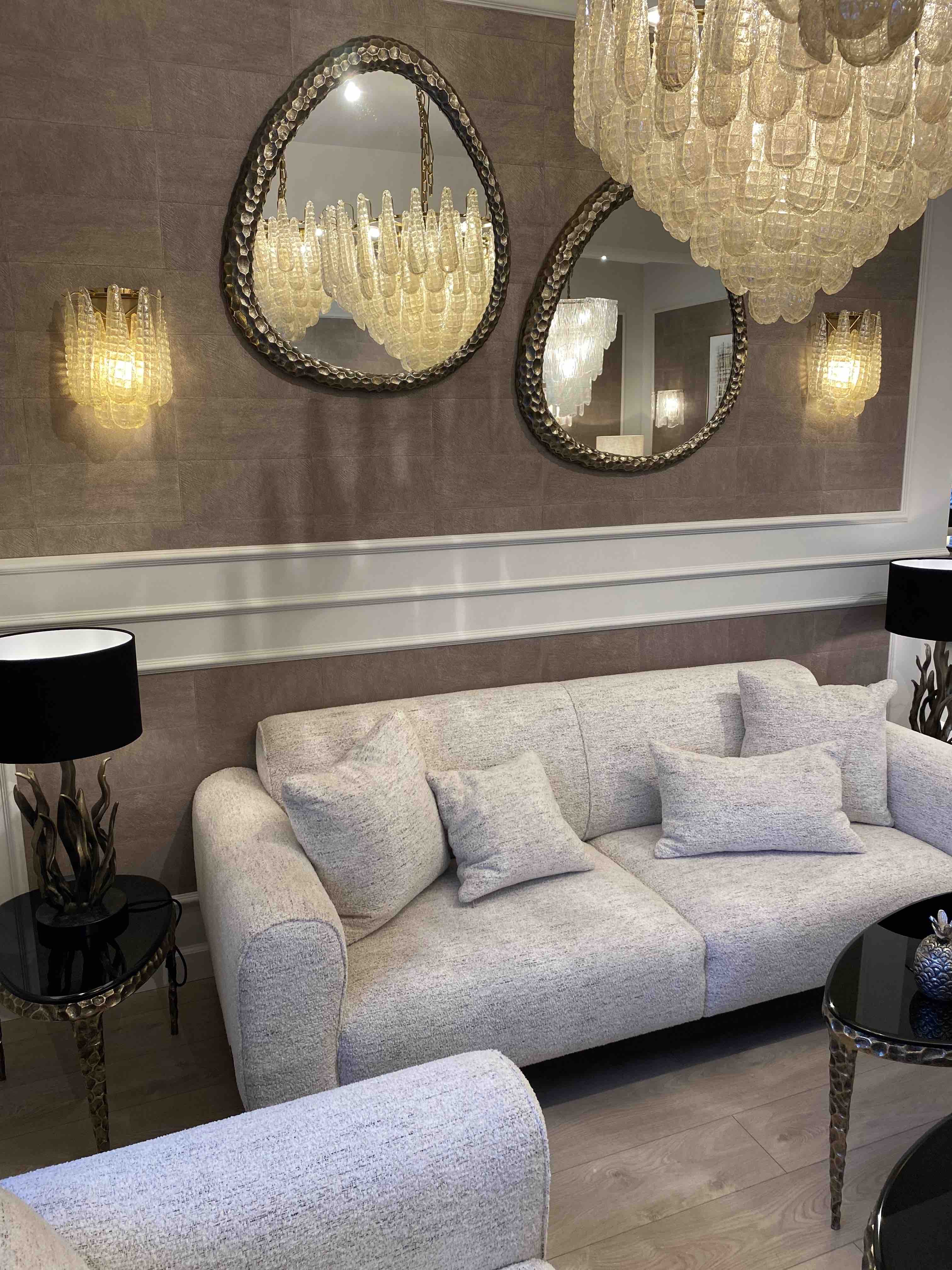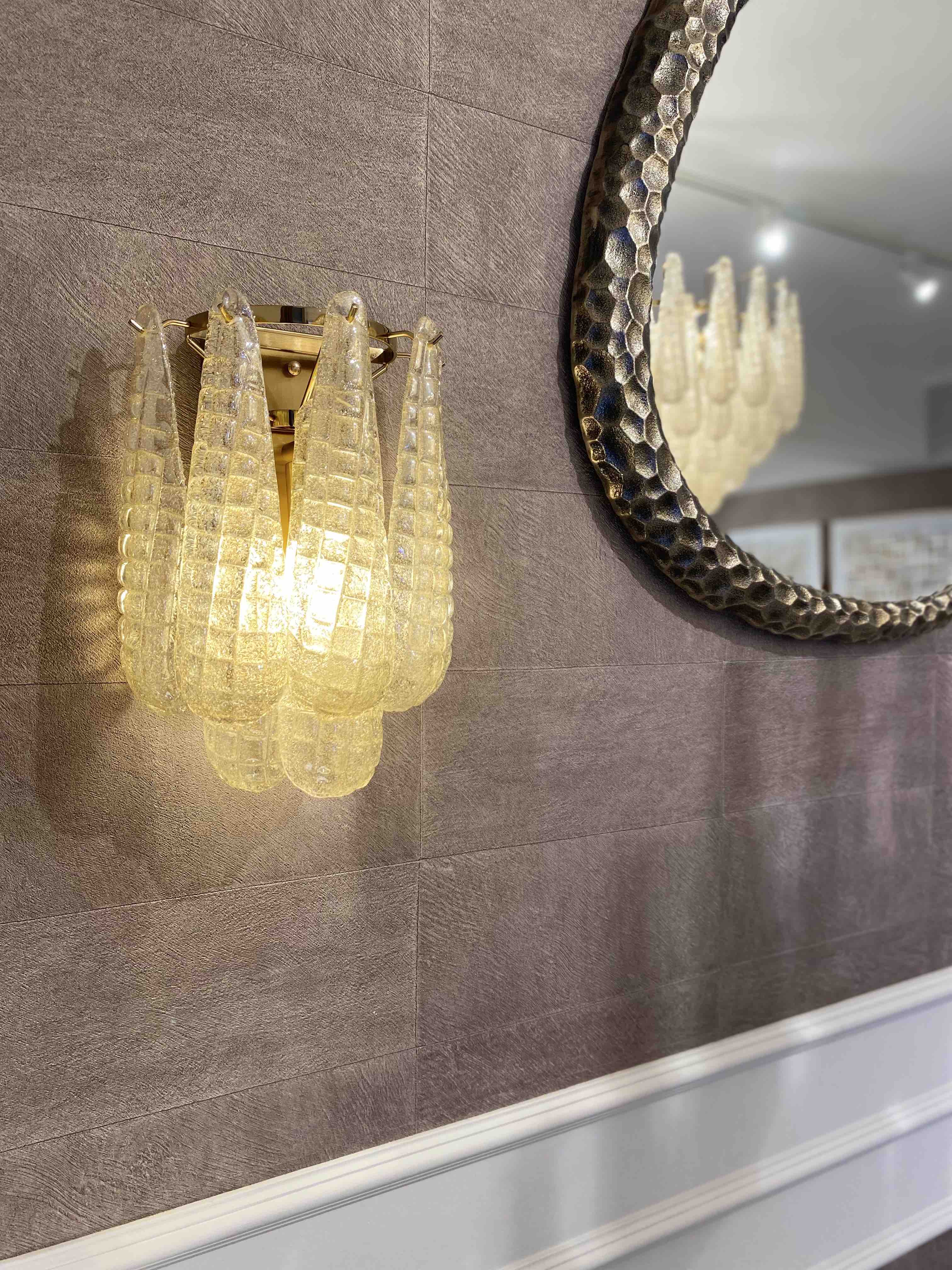 Бра Morissette создано из стеклянных фактурных элементов в форме капель — воплощение изысканной роскоши и утончённой эстетики. Его многослойный силуэт создает впечатляющий каскад, где каждая стеклянная капля отражает теплый свет и превращает его в мерцающее сияние.