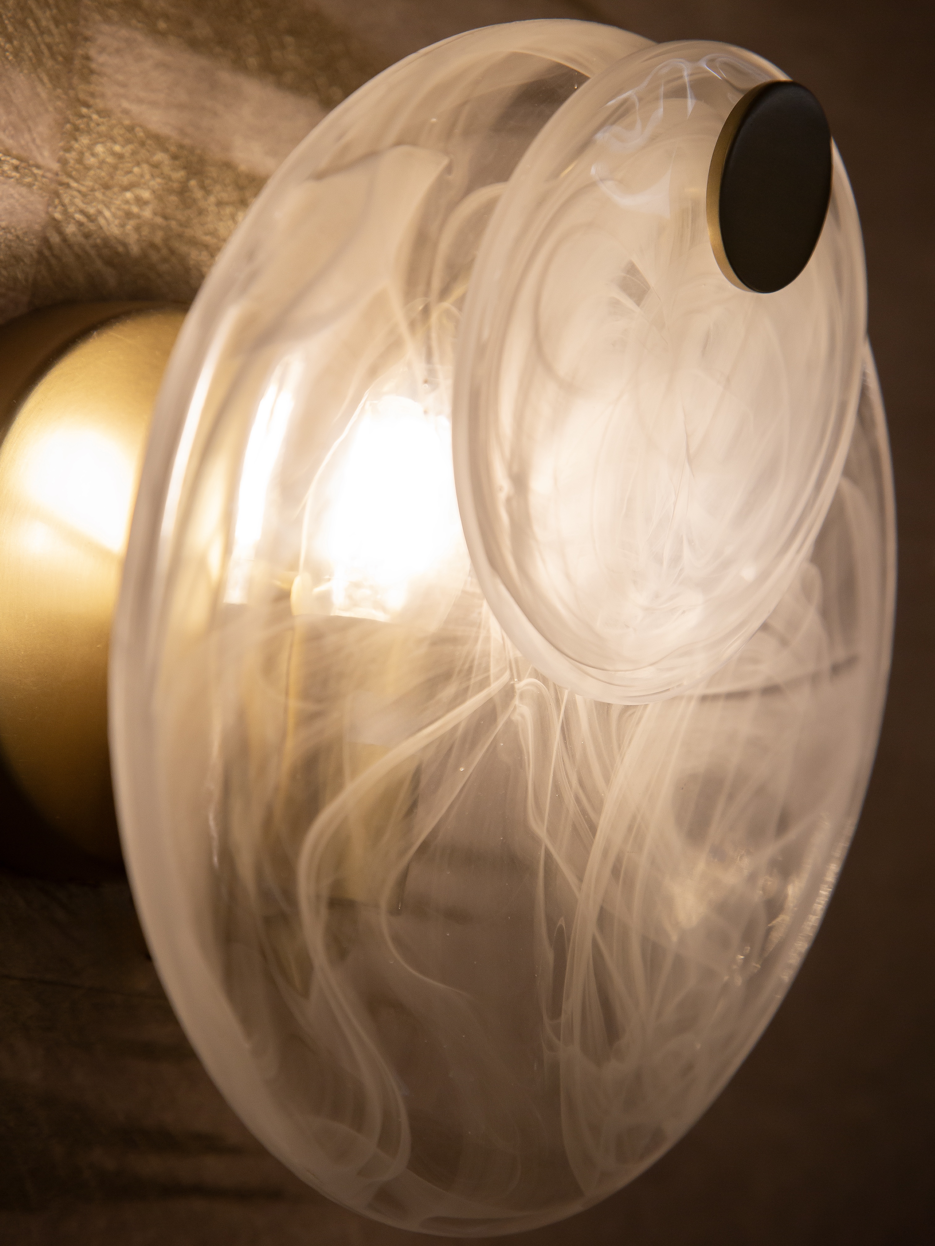 Словно дым, застывший в гранях полупрозрачного стекла, изысканный узор сделает бра Fumee исключительным украшением вашего интерьера. Медные детали придают ему стильные очертания. Отражая мягкий свет, бра создаст уютную атмосферу тепла в вашем доме.