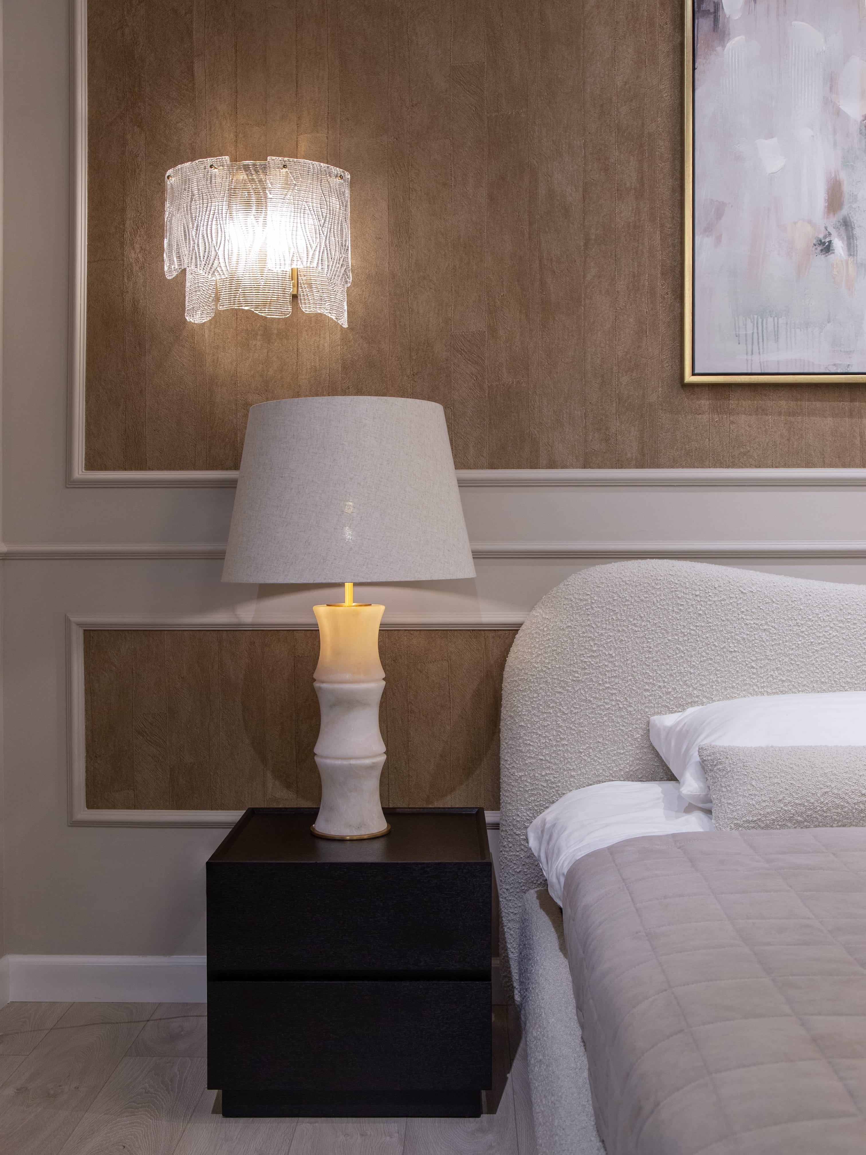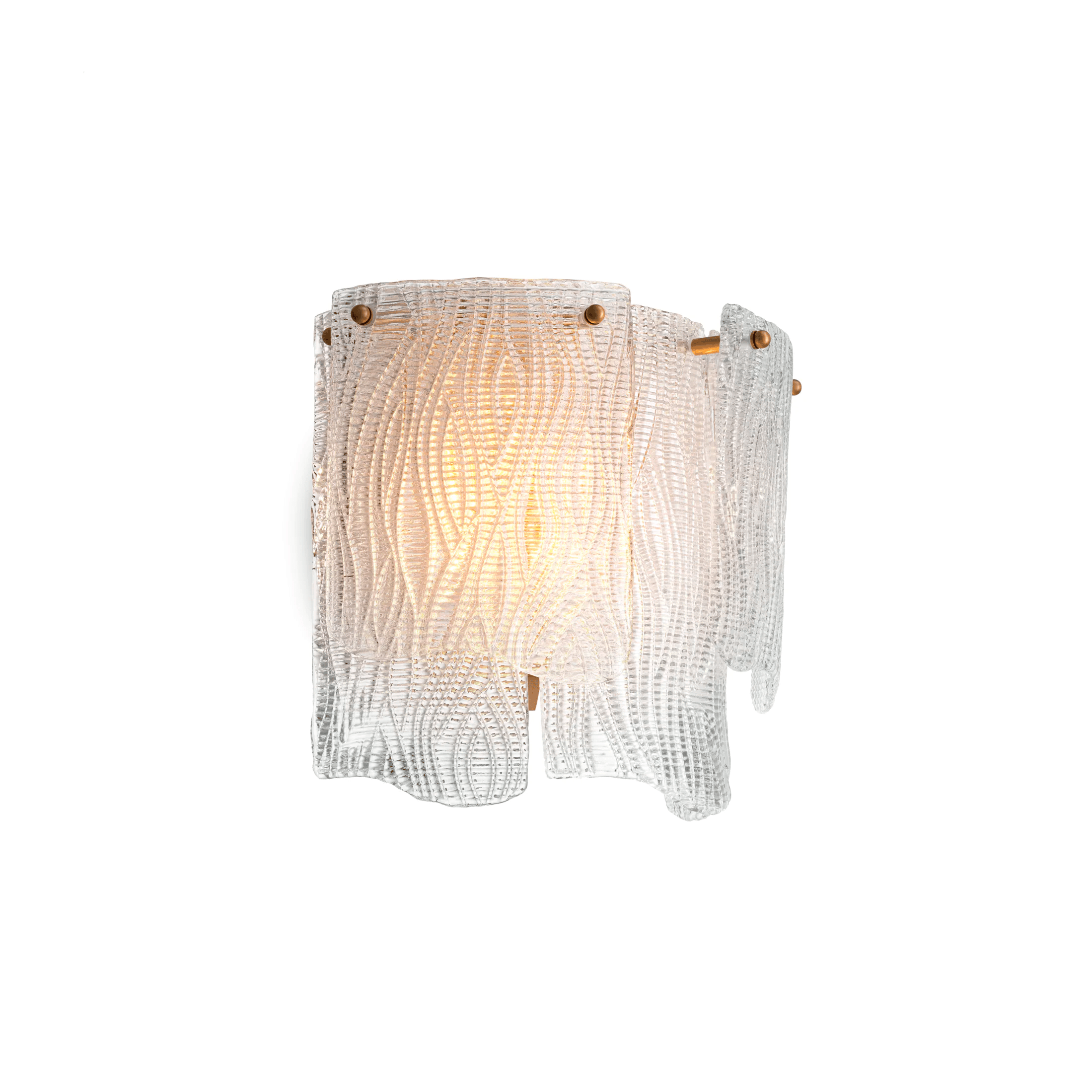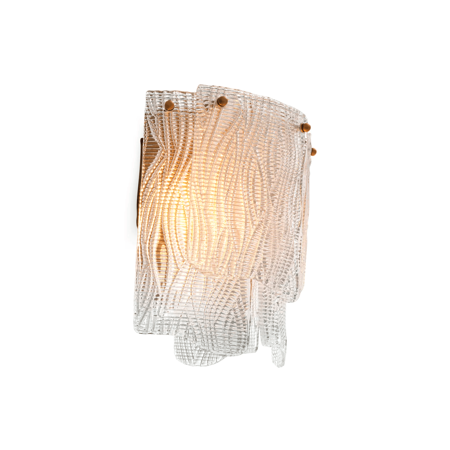 Изысканное настенное бра Kristel мягко пропускает теплый свет, отражая его в рельефной огранке полупрозрачного стекла, созданного вручную. Состоящая из множества тонких деталей, оно украсит интерьер холла, гостиной или спальни своим изяществом.
