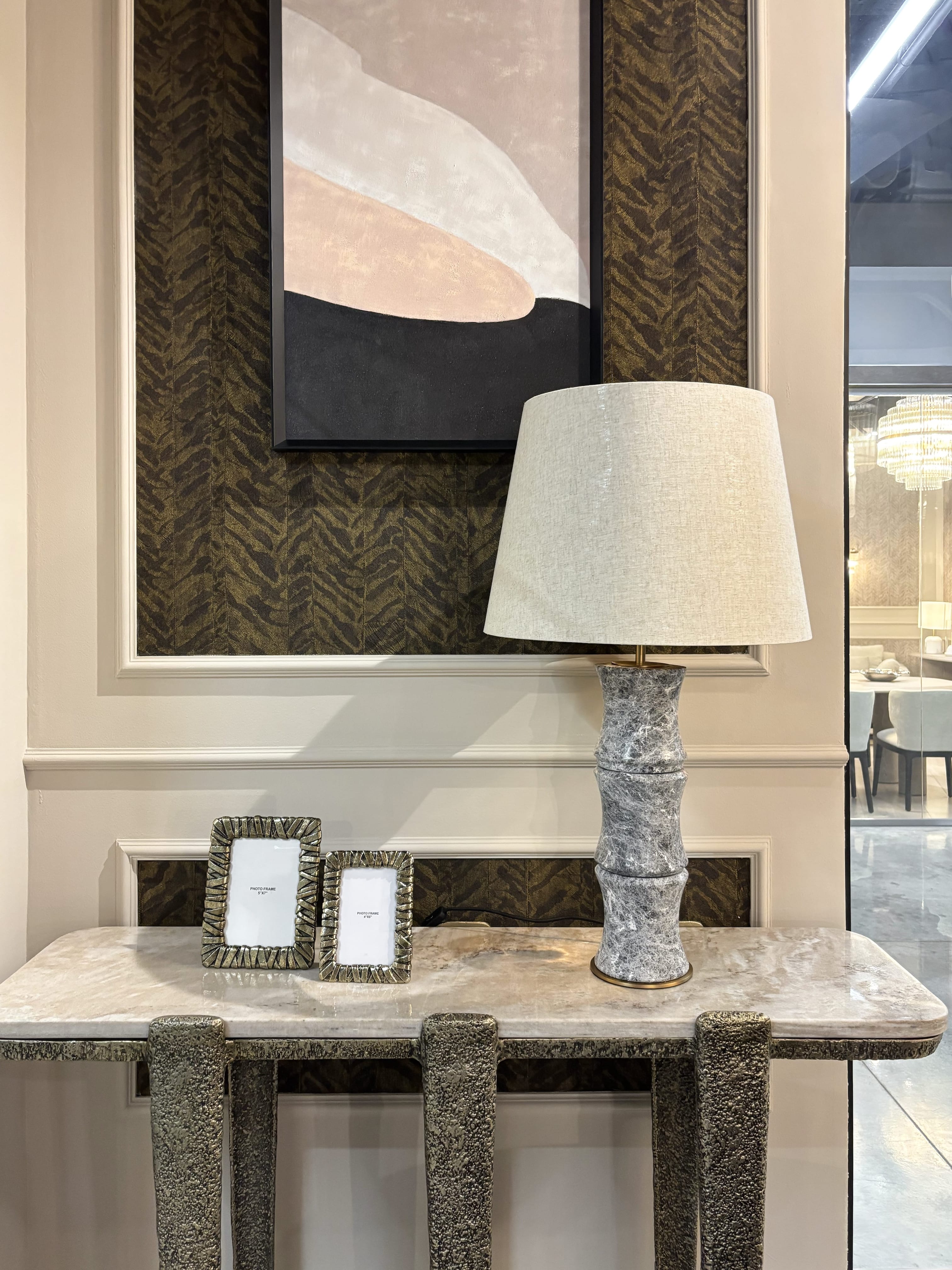 Словно стебель бамбука, основание из мрамора в дизайне настольной лампы Crosby акцентно выделит ее в интерьере, создав теплую уютную атмосферу. Абажур из светлого текстиля завершает ее стильный силуэт.