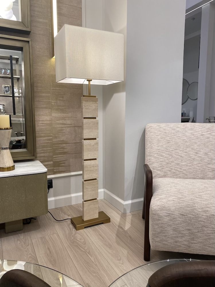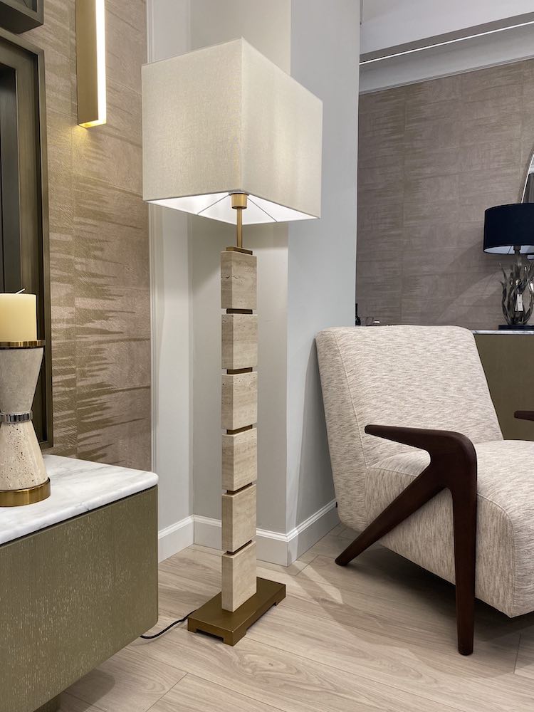 В дизайне торшера Town основание из травертина подчеркивает выразительную красоту натурального камня. Теплый свет осветит пространство гостиной или спальни сквозь абажур из светлого текстиля.
