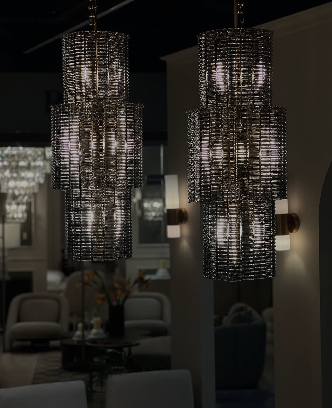 Прозрачные детали из темного рифленого стекла создают стильный силуэт подвесной люстры Houston. Она излучает свет, наполняя пространство теплом и уютом. Лаконичная форма и латунные элементы придают ей современный шарм, делая люстру идеальным акцентом в интерьере. Она гармонично сочетает в себе утонченную эстетику, создавая атмосферу элегантности и комфорта.