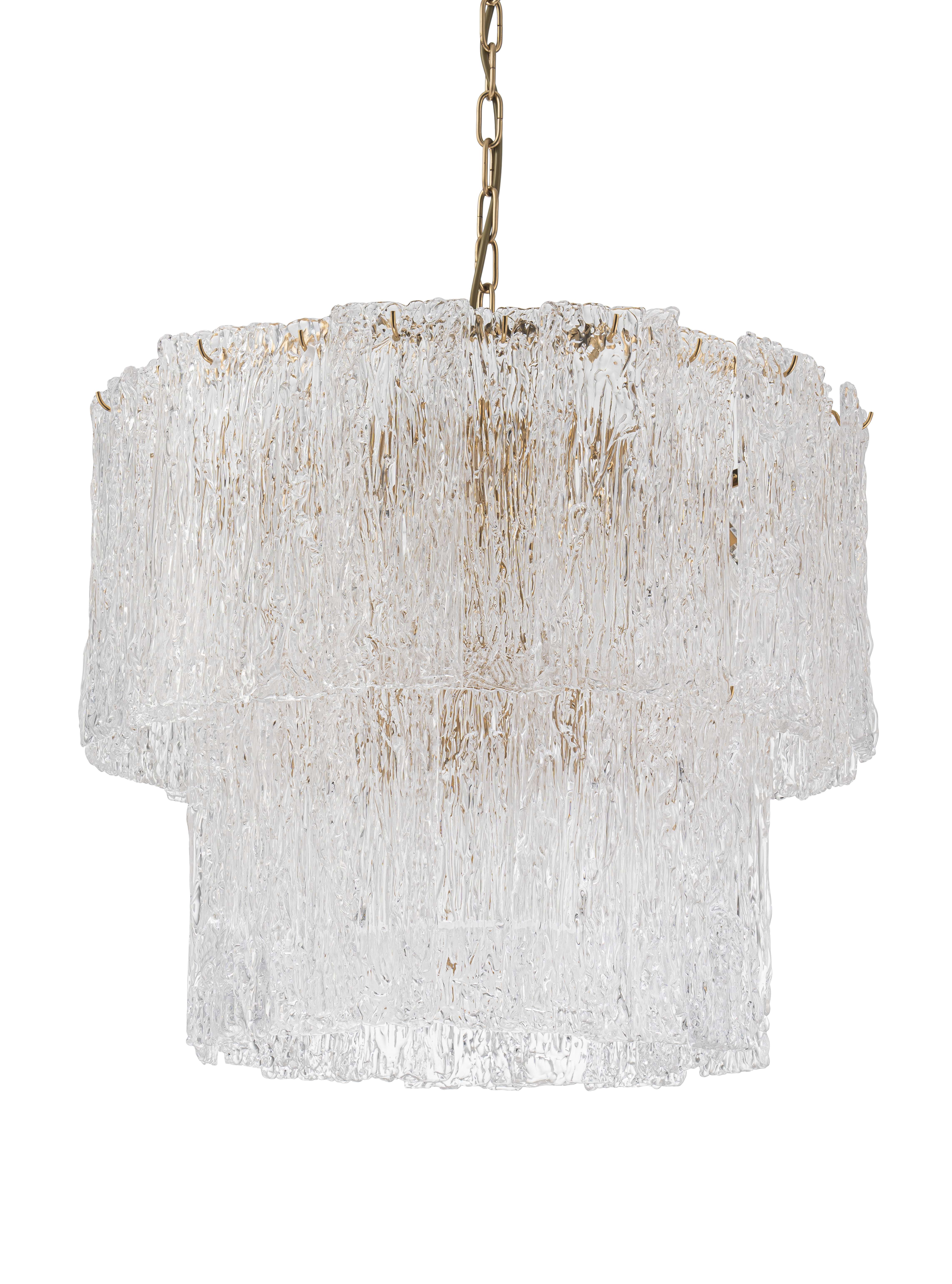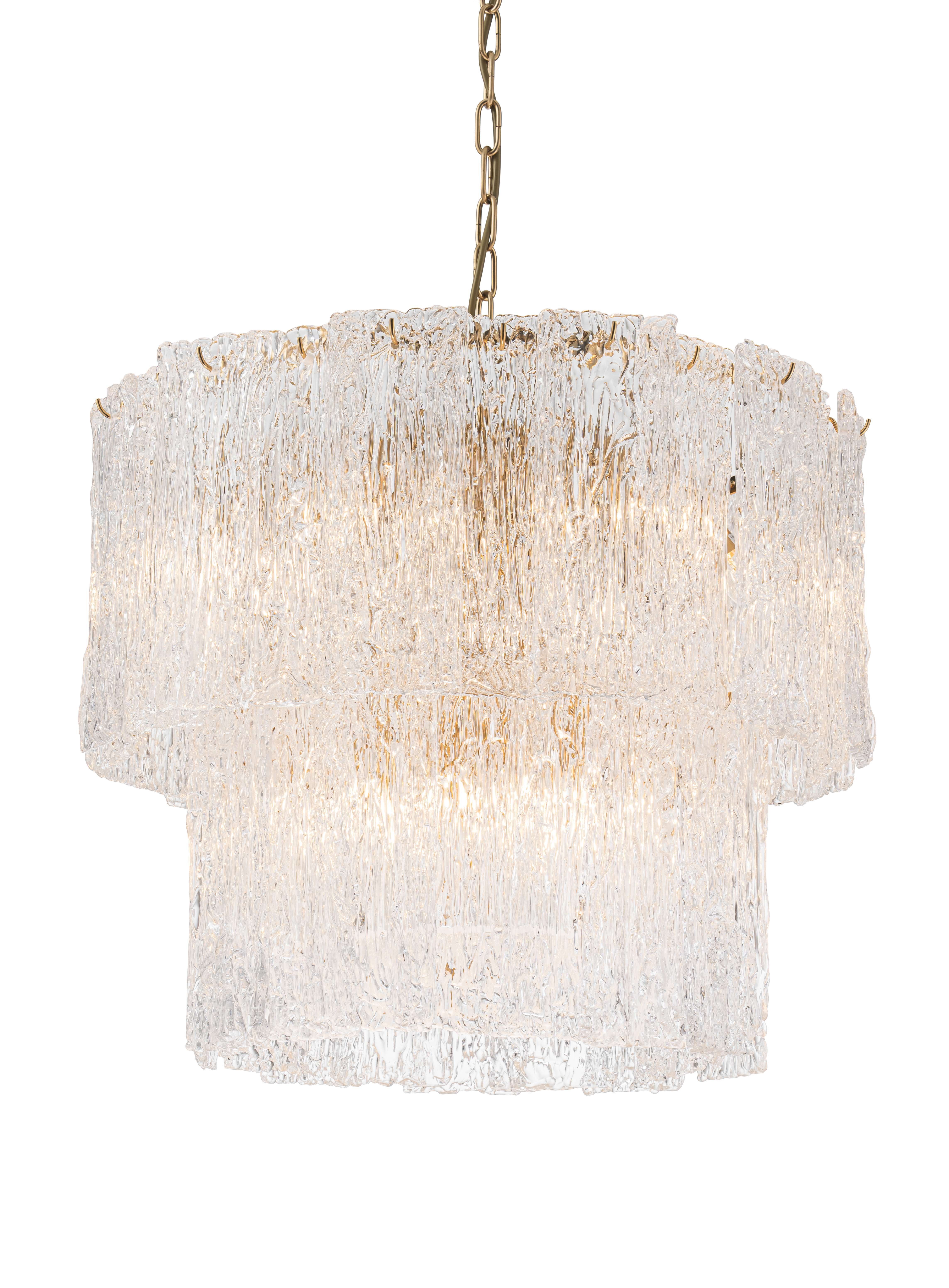Люстра Virginia — истинное произведение искусства, созданное для ценителей утончённой эстетики. Каскадный силуэт из изысканных деталей, напоминающих мятую текстуру стекла, создаёт игру света и тени, наполняя пространство уникальной атмосферой. Каждая грань переливается, словно отражая движение воды, добавляя глубину и элегантность интерьеру. Люстра станет центральным акцентом, привлекая восхищённые взгляды.