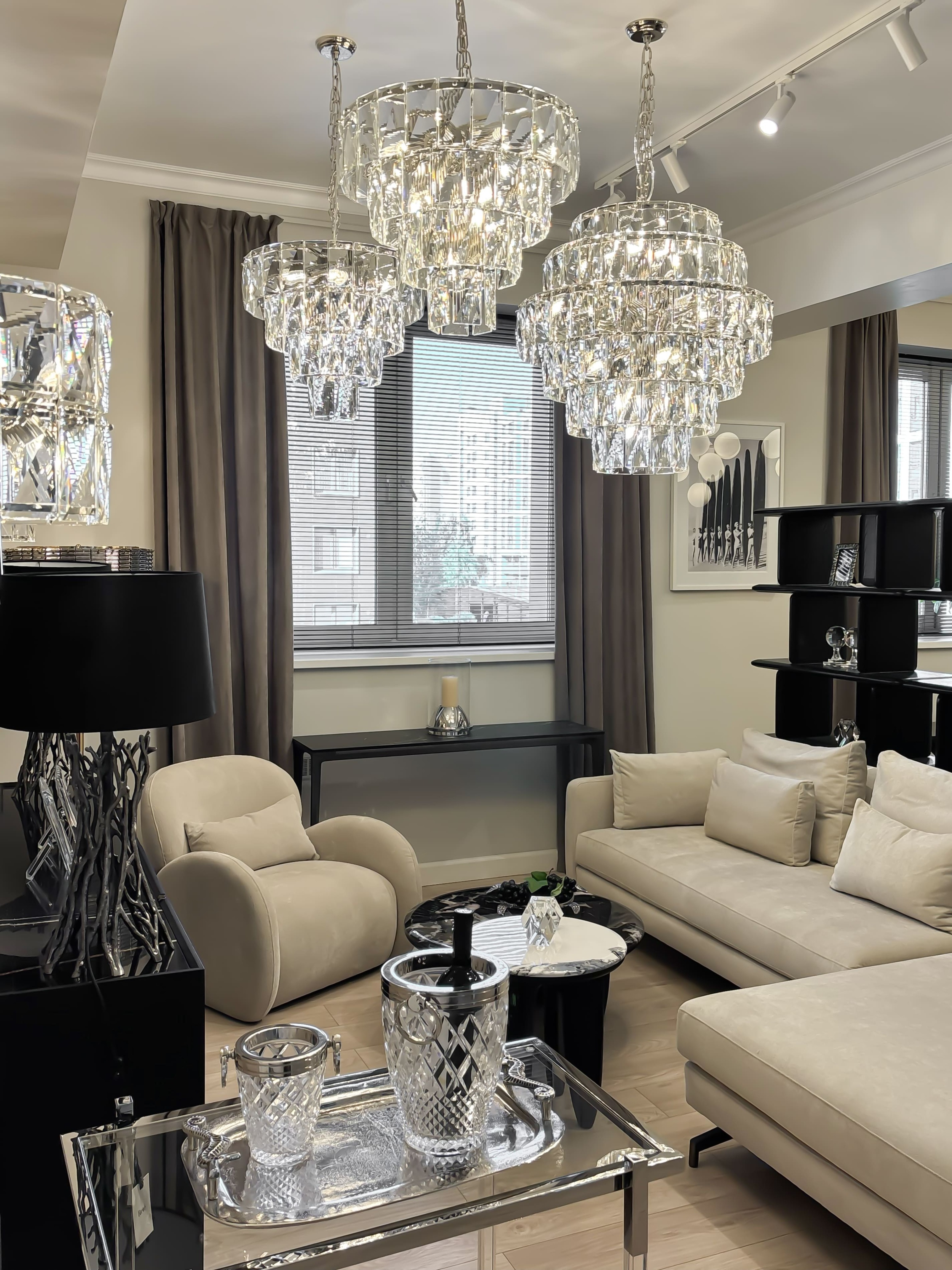 Словно созданная из осколков горного хрусталя, люстра Vivien изысканно осветит пространство современной гостиной. Излучая мягкий рассеянный свет, она украсит интерьер изяществом утонченной роскоши.